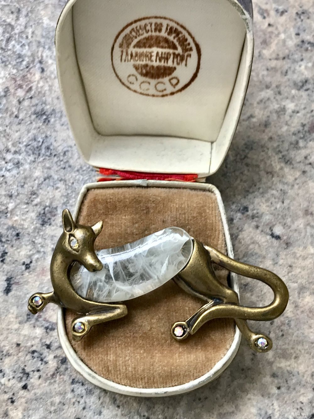 Крупная брошь с основой из латуни. Длина 5,7см. Состояние хорошее.