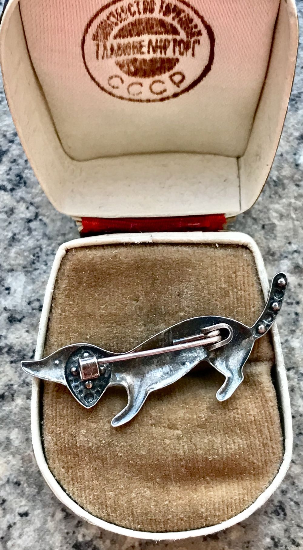Небольшая брошь из мельхиора с серебрением. Длина от макушки до кончика хвоста 4,4см. Состояние хорошее.