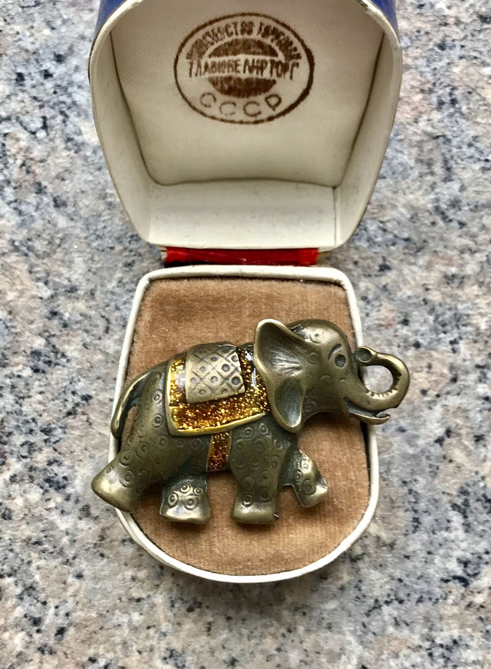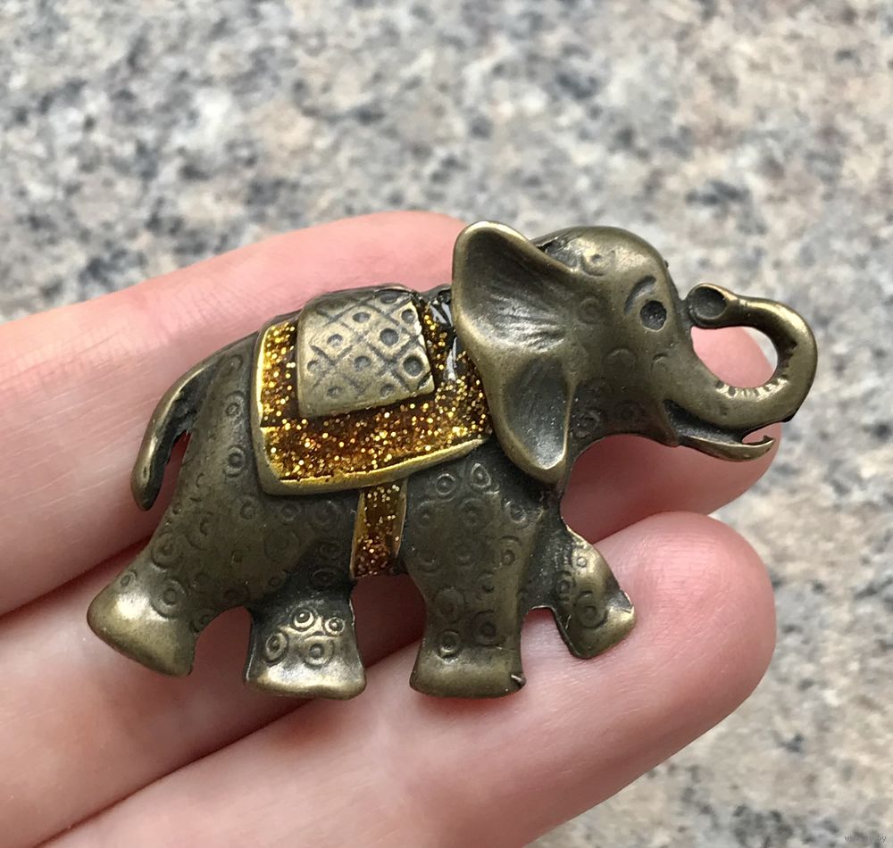 Крупненькая брошь из металла в виде слона. Лицевая сторона украшена эмалью. Размер 5х2,8см. Состояние хорошее.