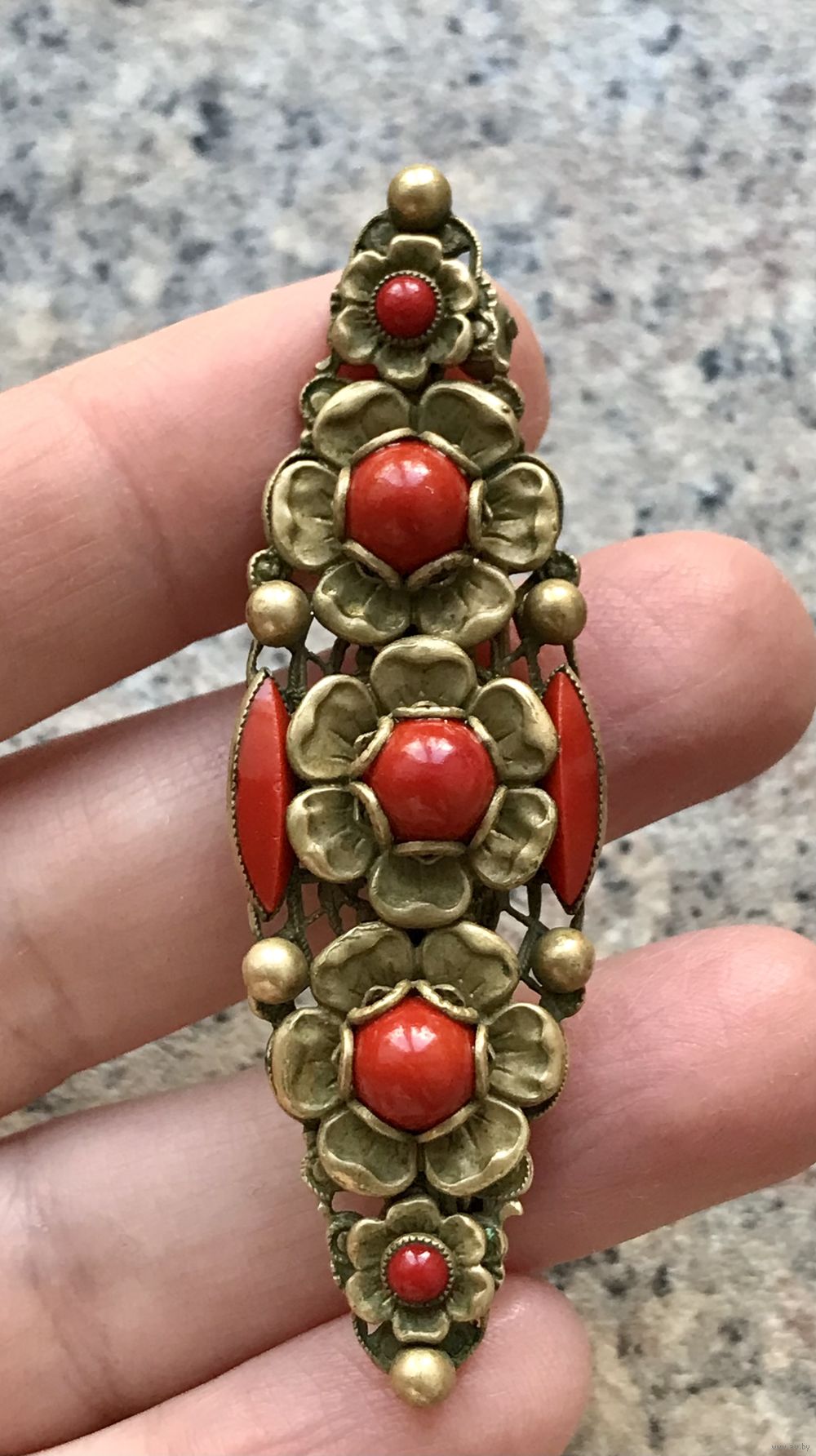 Антикварная брошь от знаменитых братьев Neiger. Изготовлена в 1920-е гг. в Яблонце. Основа выполнена из латуни, вставки из цветного стекла. Размер броши 6,5х2см. Для своих лет состояние отличное. Коллекционный экземпляр.