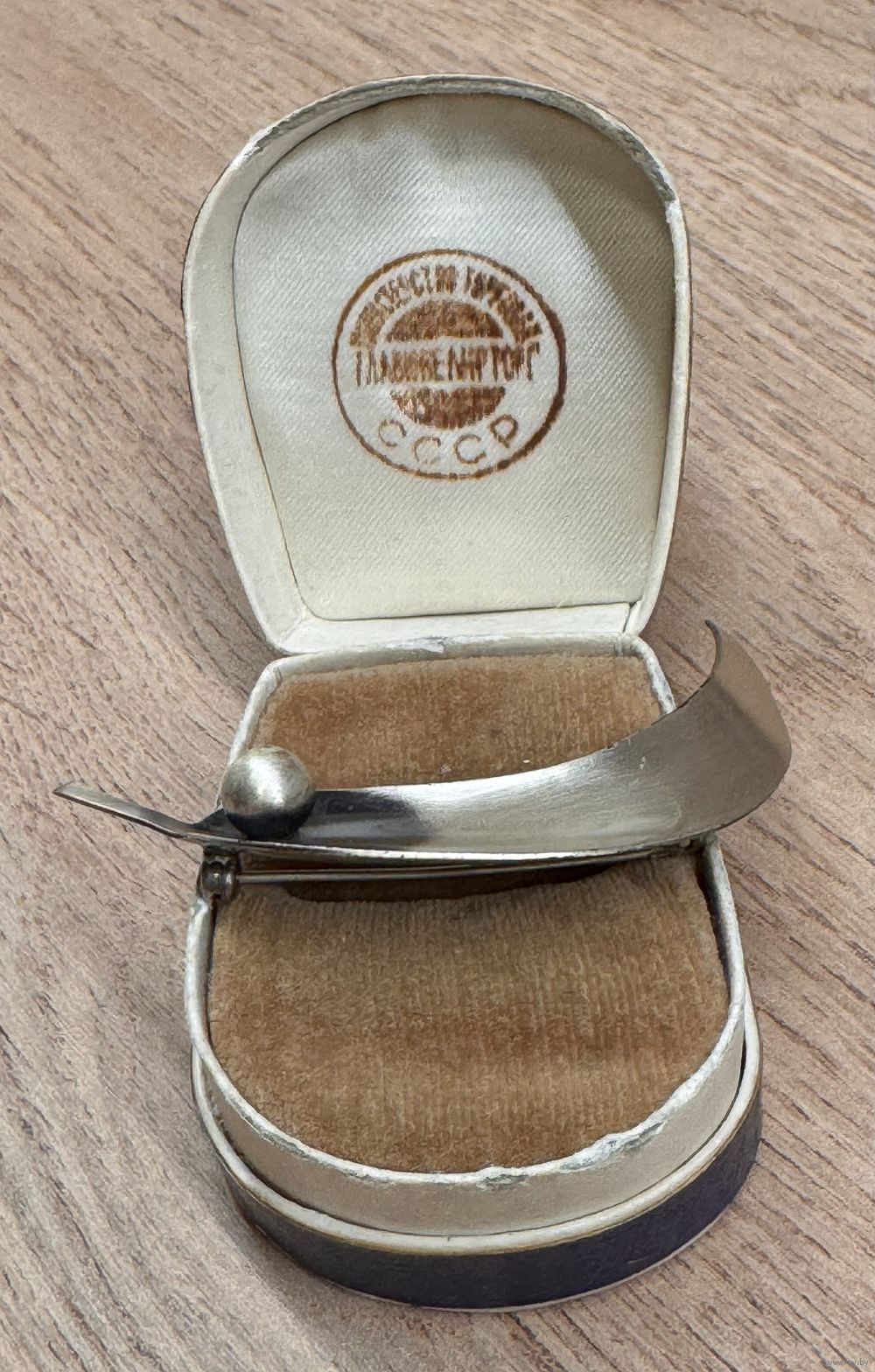 Брошь из серебра от компании JewelArt. Размер 6х1,5см., вес 6,20гр. Маркирована. Состояние хорошее.