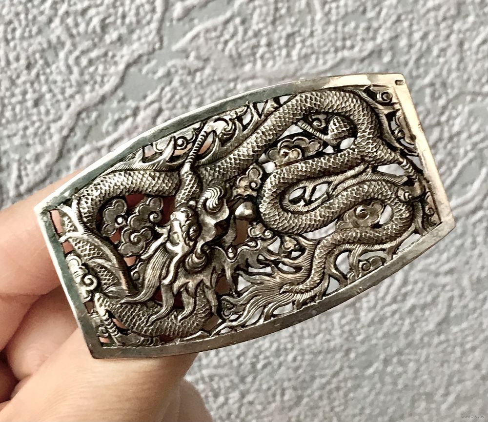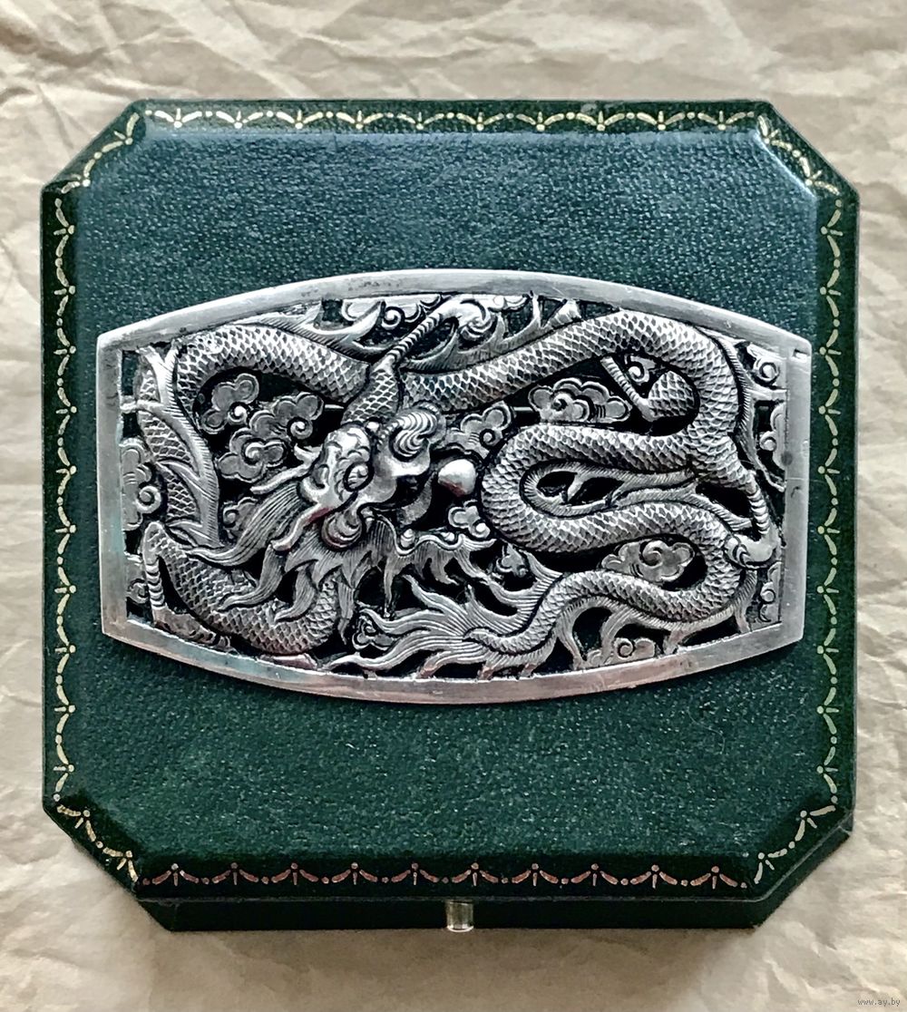 Крупная винтажная брошь унисекс из серебра с объемным изображением дракона. Вьетнам. На лицевой стороне стоит нечитаемое клеймо (металл дополнительно проверен в юв. мастерской). Размер броши 6,3х3,8см., вес 17,32гр. Состояние хорошее.