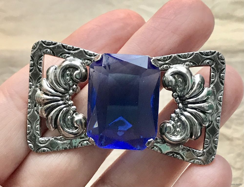 Крупная винтажная брошь Чехия? Германия? Основа из металла серебристого тона, вставка из стекла. Размер броши 5х3см., размер вставки 2,4х1,8см. Состояние хорошее.