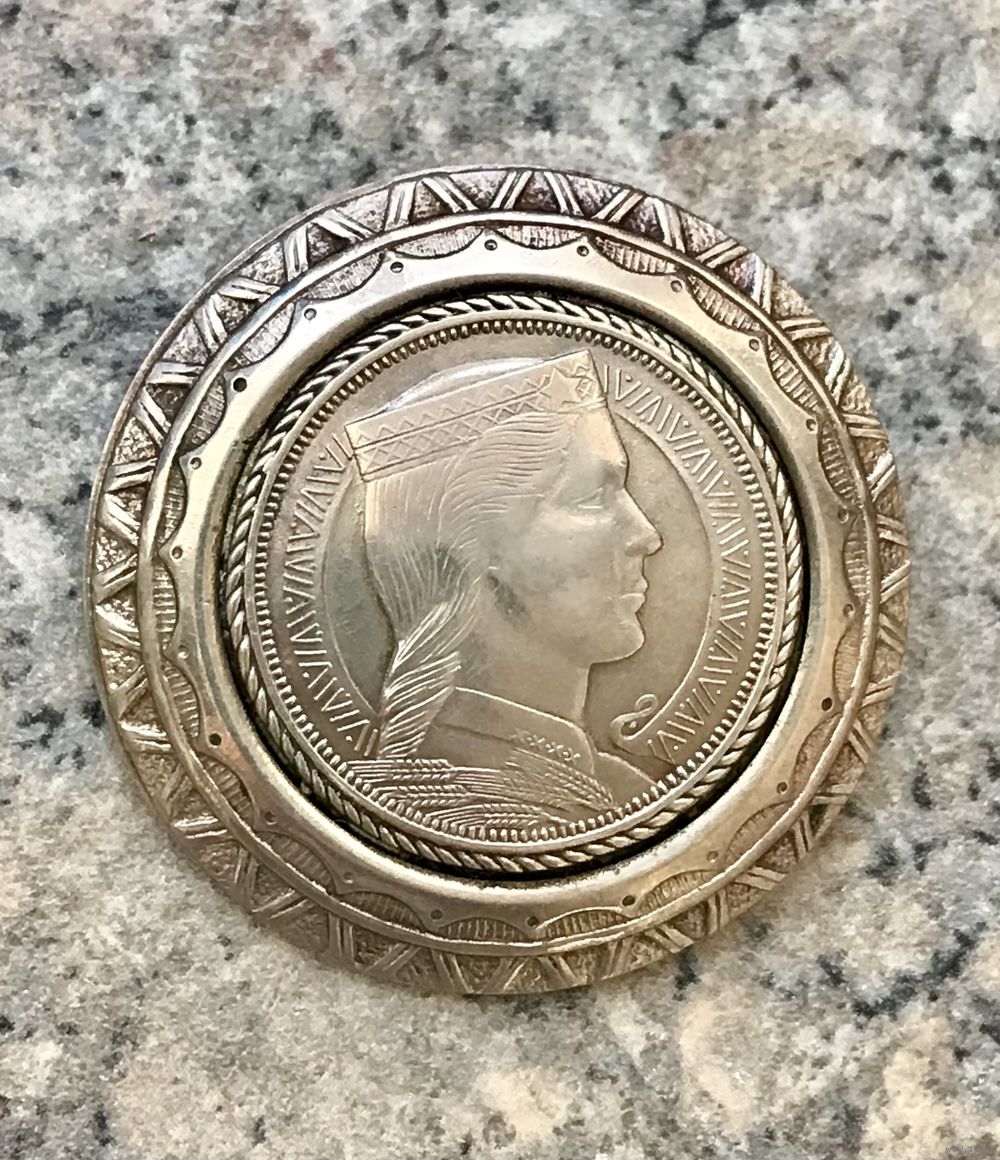 Крупная винтажная латвийская брошь из металла серебристого тона. Диаметр 3,3см. Тяжёленькая.