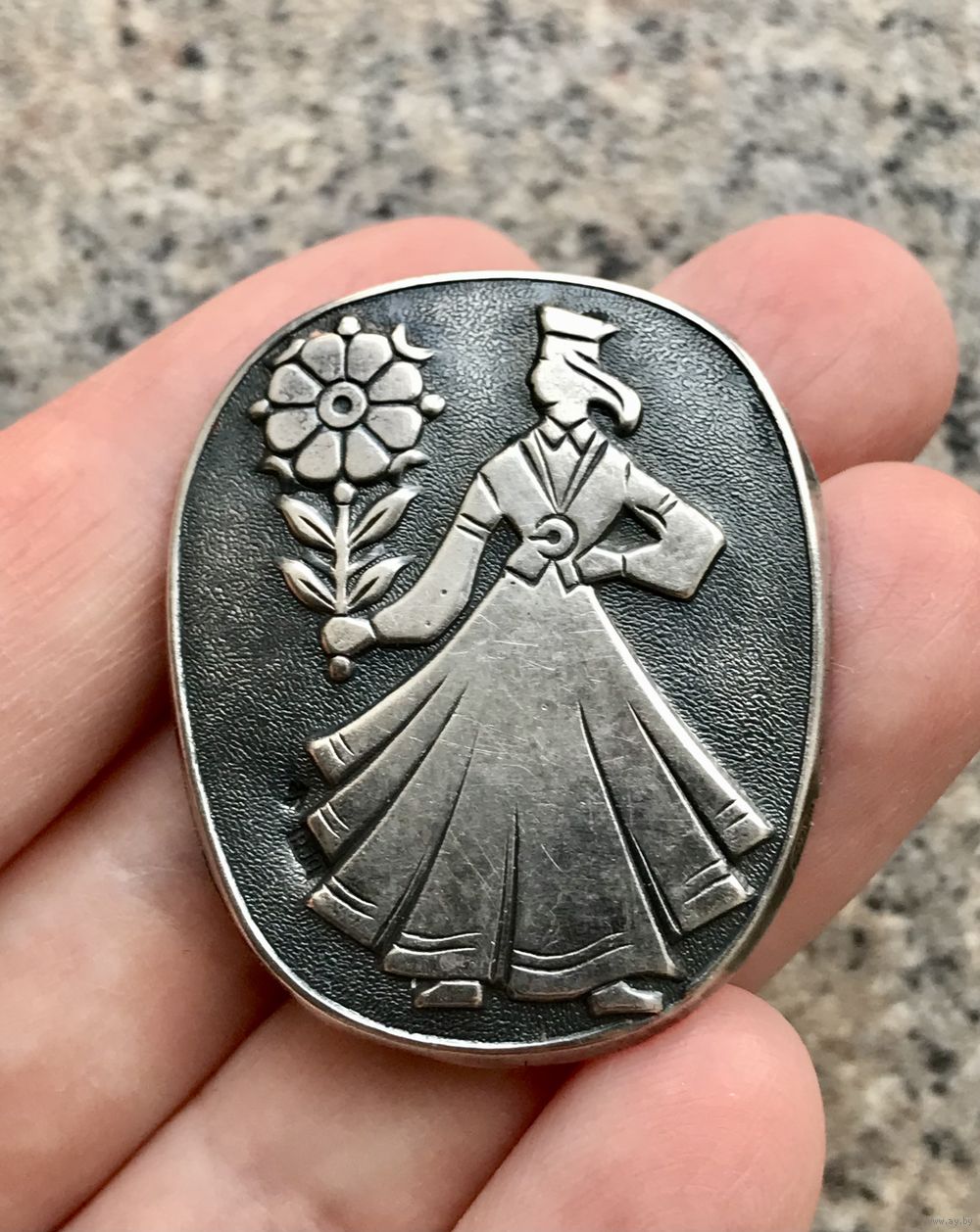 Брошь из серебра 875пр. изготовлена в 1960г. артелью «Ригас гравирес». Размер 3,7х3см., вес чуть больше 4гр. Состояние хорошее. Нечастая модель.