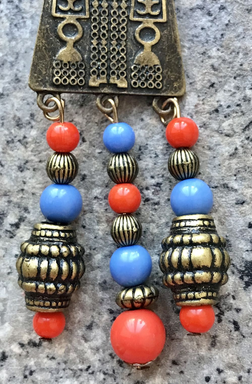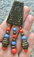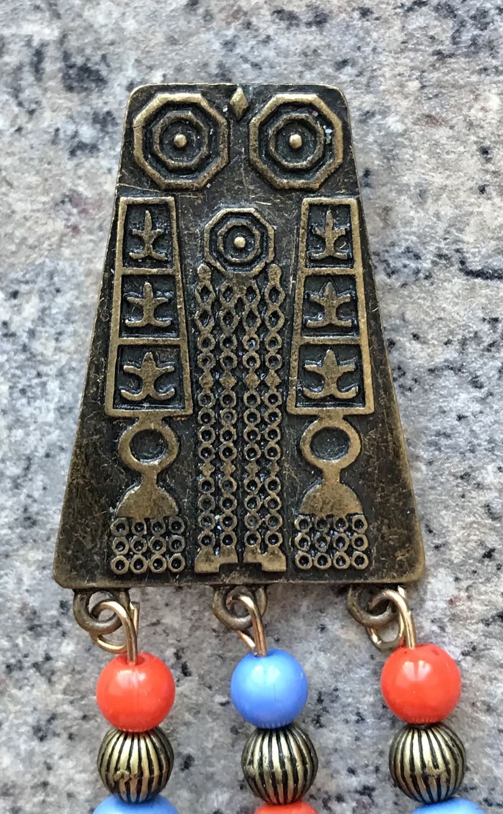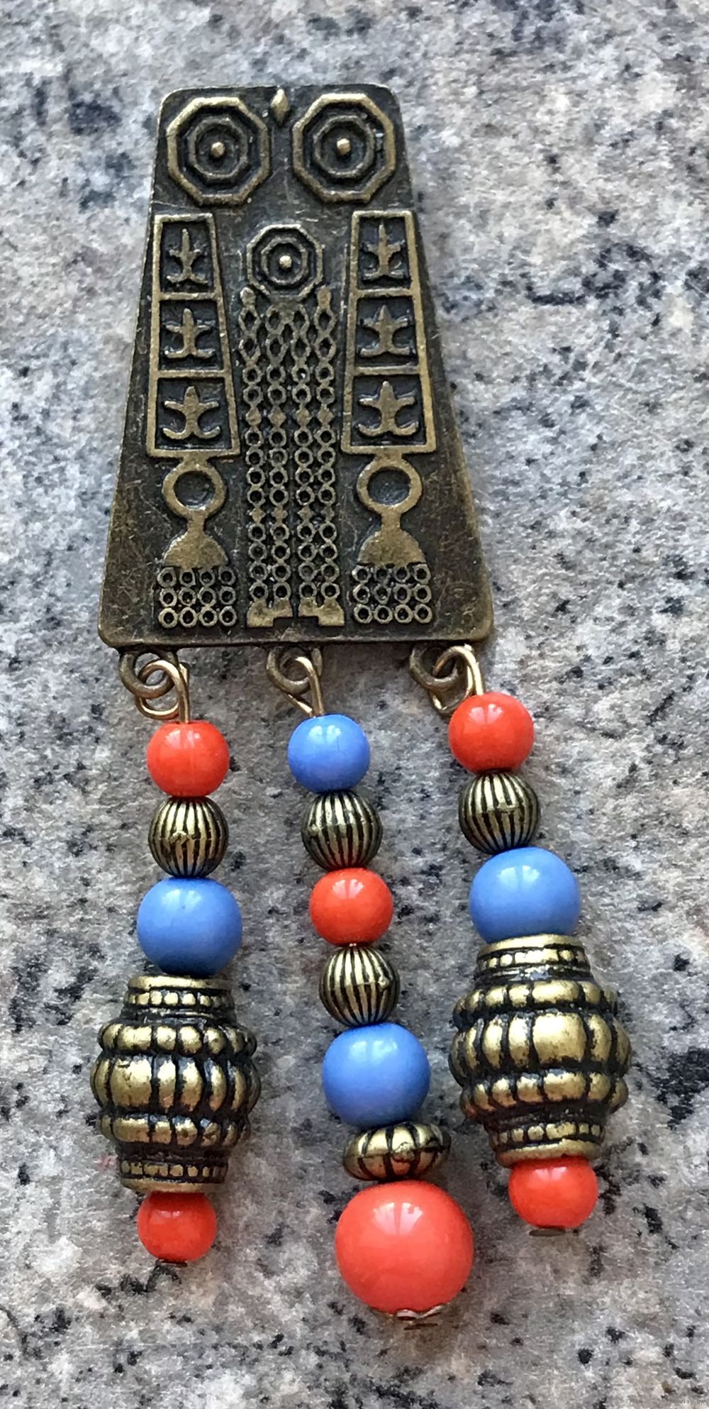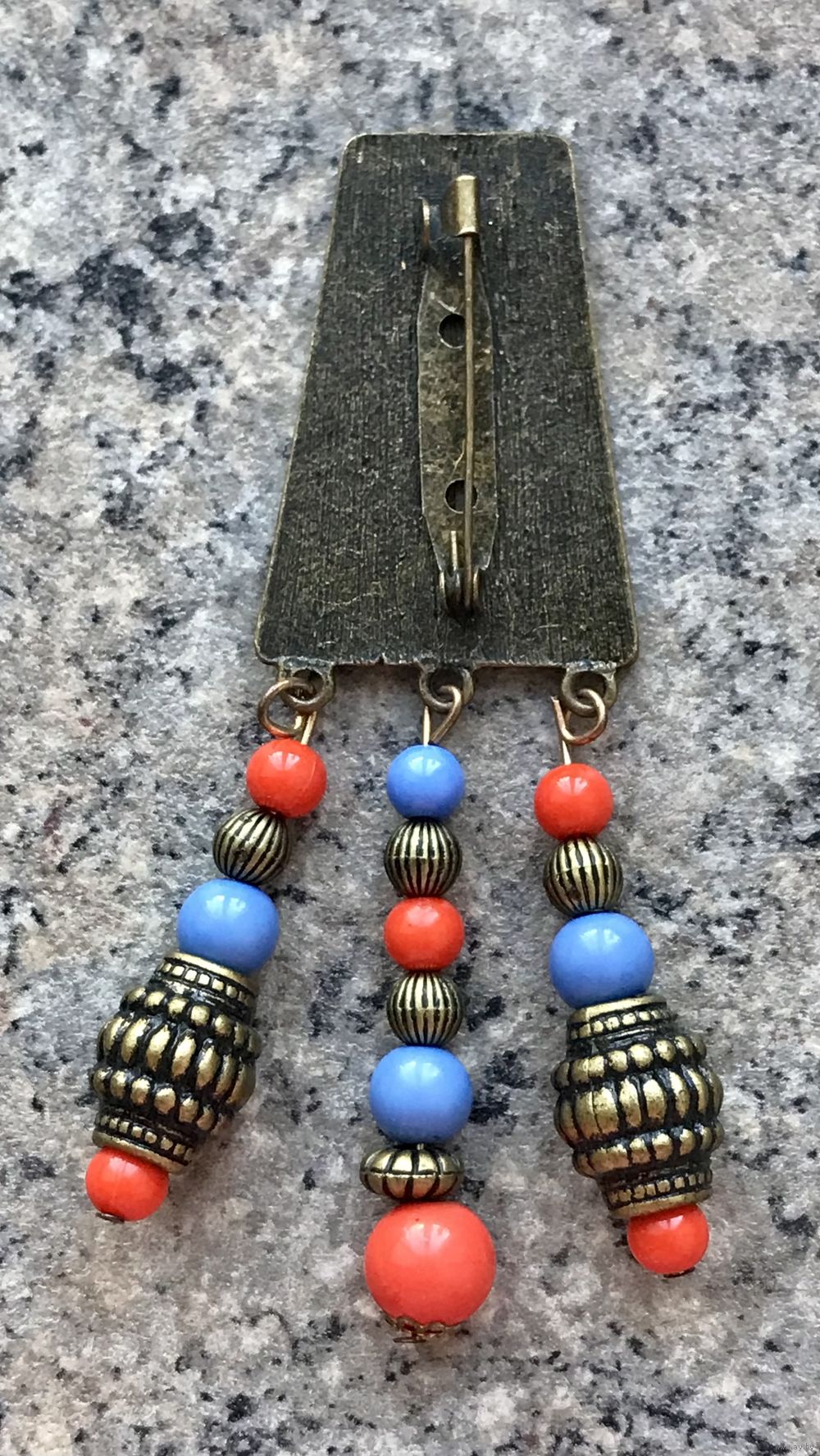Крупная винтажная брошь из латуни, бусины на подвесках из пластика. Высота с подвесками 9см. Состояние хорошее.