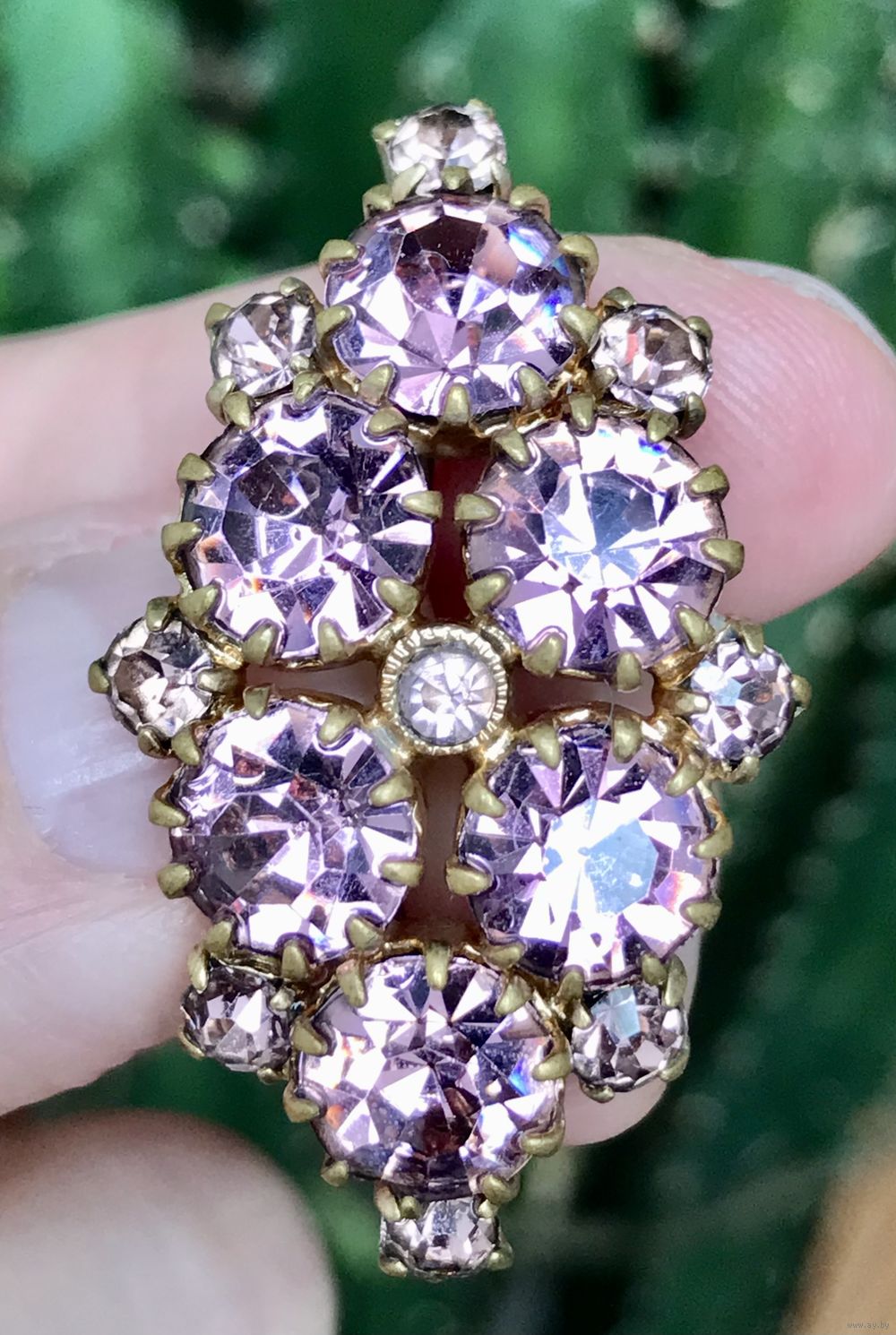Небольшая винтажная чешская брошь со вставками из стекла. Размер 3,5х2см. Состояние хорошее.
