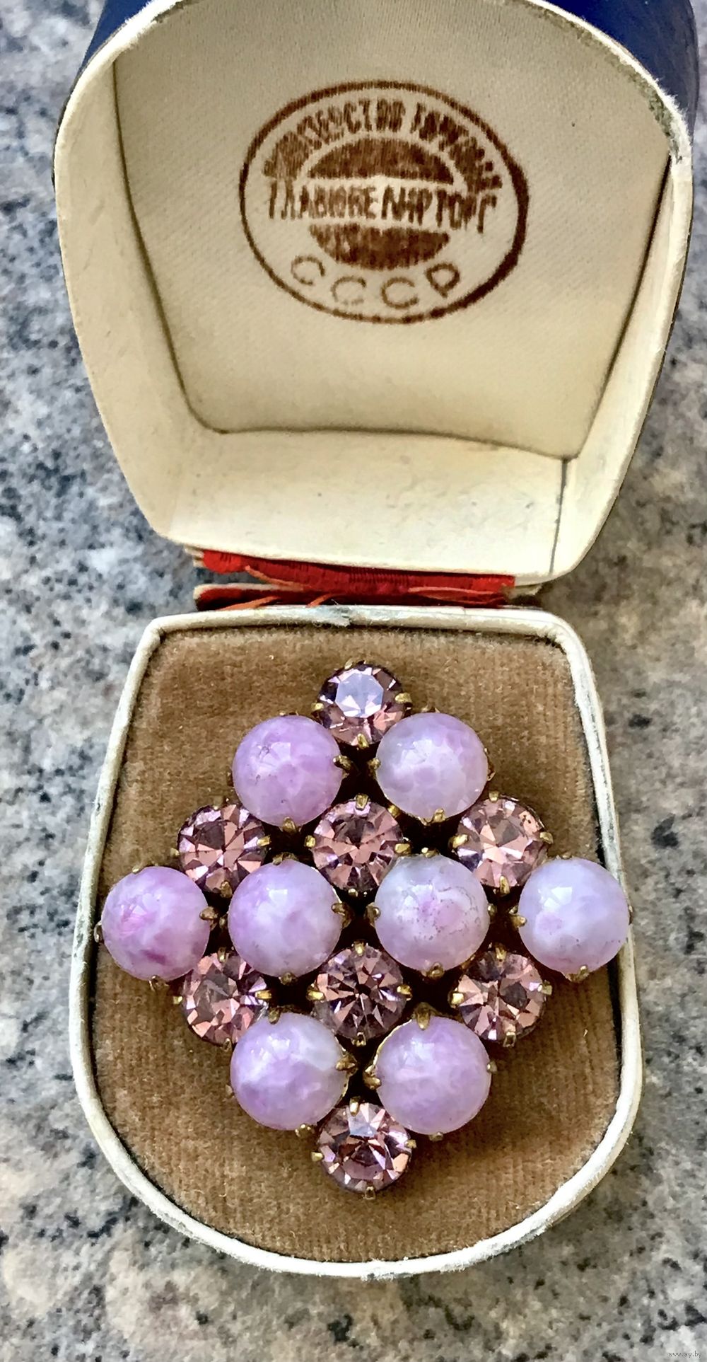 Винтажная чешская брошь с основой из латуни, вставки кристаллы и художественное стекло. Размер броши 2,7х2,7см. Состояние хорошее.