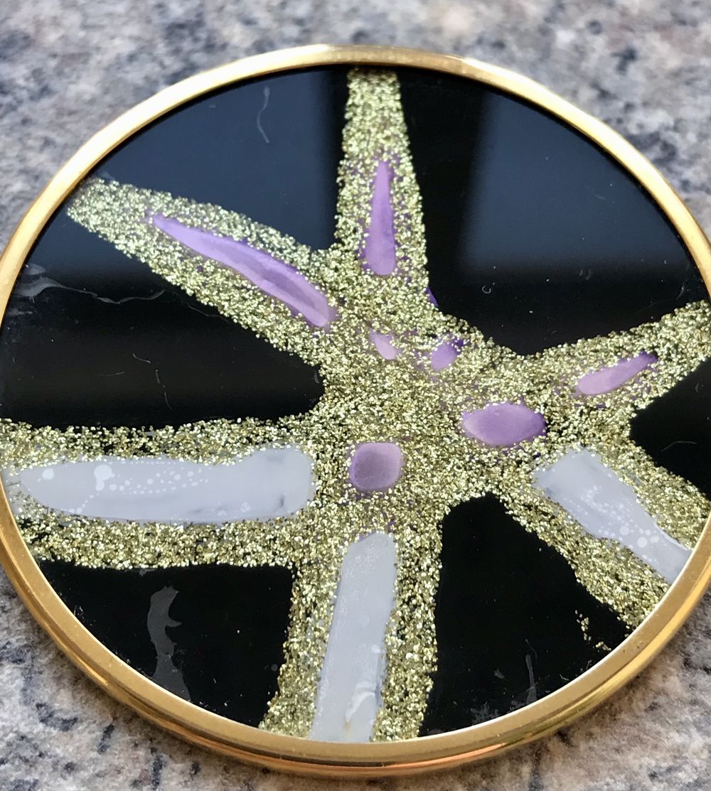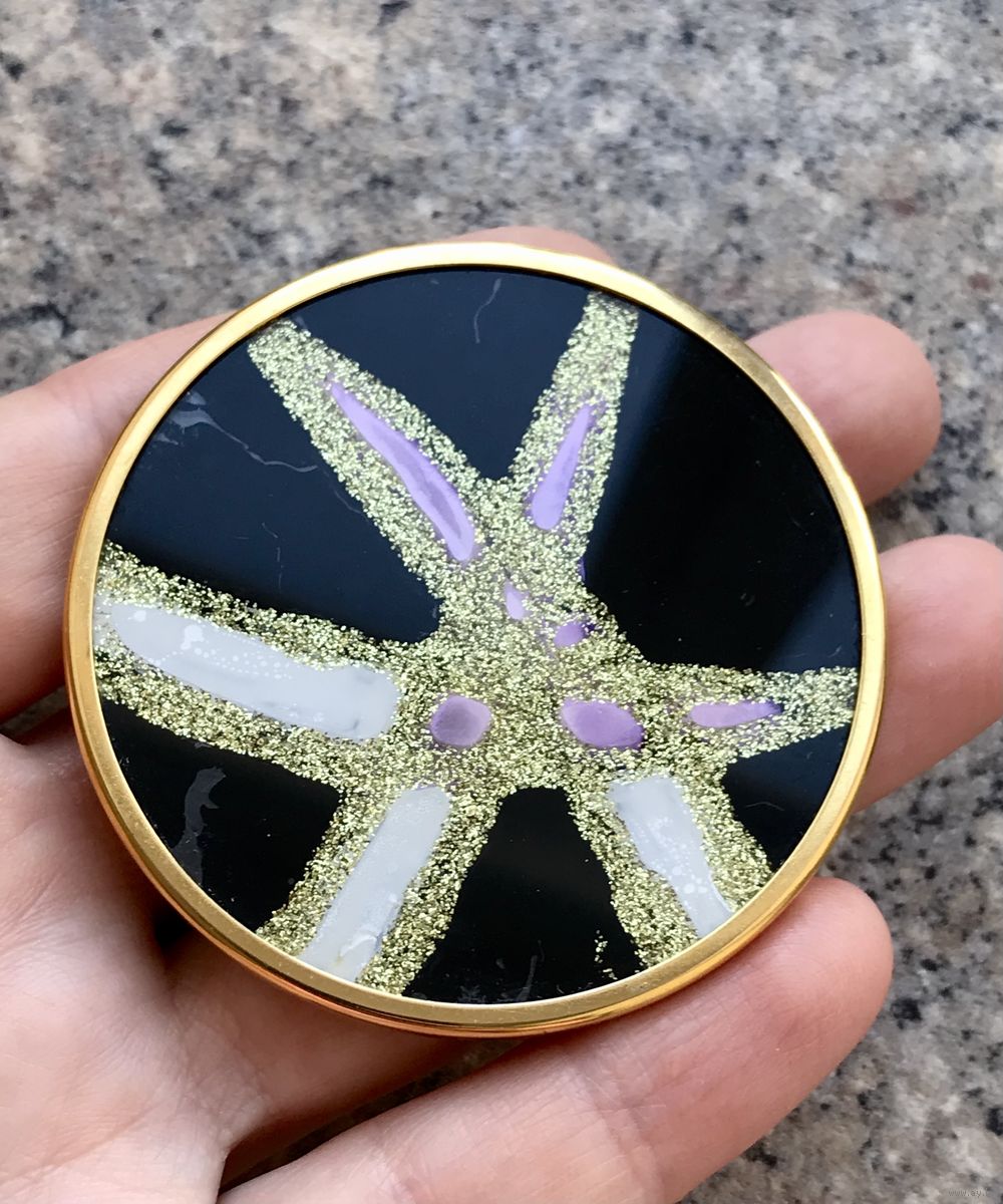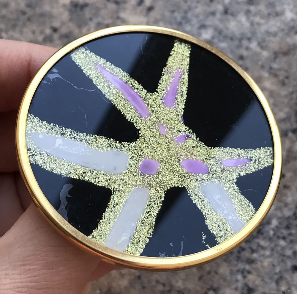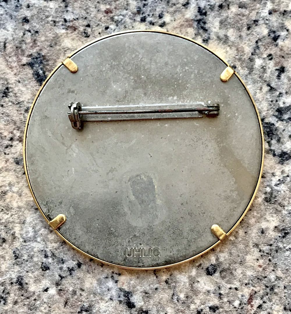 Крупная винтажная (1970-е гг.) брошь из Германии. Ручная роспись по шёлку, автор немецкий художник Uhlig. Маркирована. Все броши были изготовлены вручную, все в единственном экземпляре. Диаметр броши 5,5см.