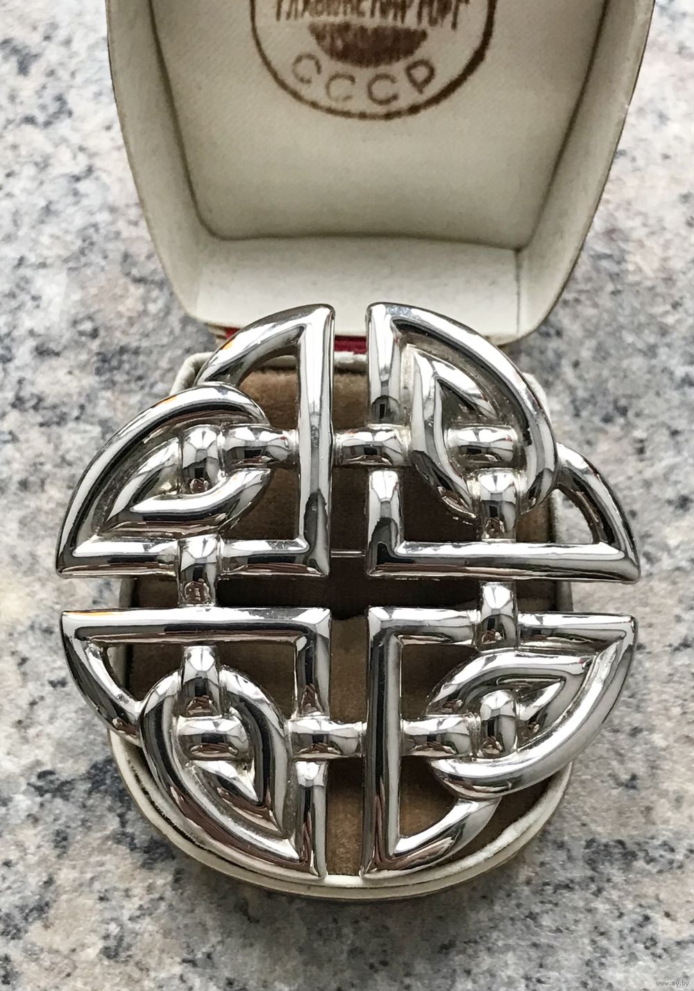 Крупная брошь кельтский узел из металла серебристого тона. Размер 4,8х4,8см. В застёжке нет фиксатора, но брошь и без него можно закрепить на ткани (учтено в цене).