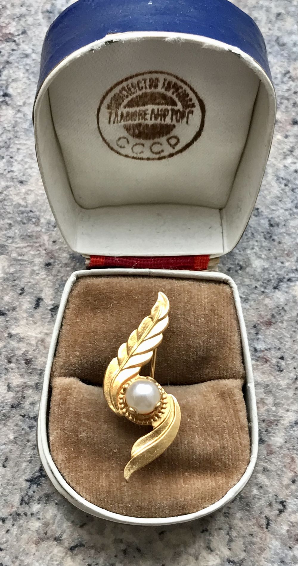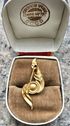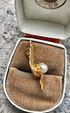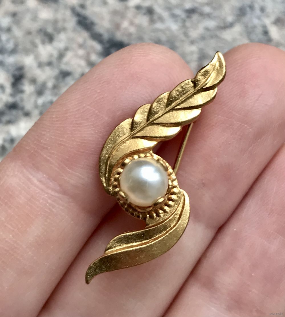Небольшая (высота 3,5 см.) винтажная брошь из латуни с позолотой (клеймо), вставка -бусина, имитирующая жемчужину. Состояние хорошее.