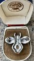 Брошь пчёлка из металла серебристого тона, лицевая сторона украшена вставкой из янтаря. Размер броши 3х3,5см. Состояние хорошее.