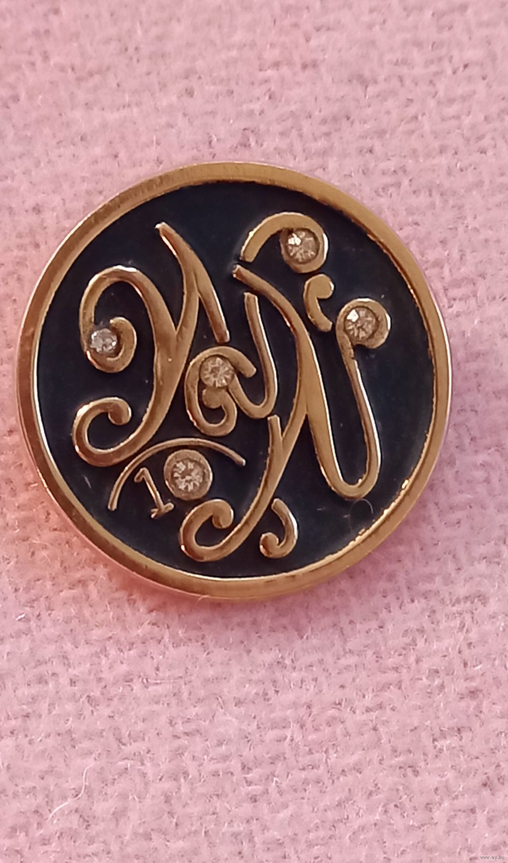 Американская винтажная брошь.Бижутерный сплав золотого цвета, стразы прозрачные