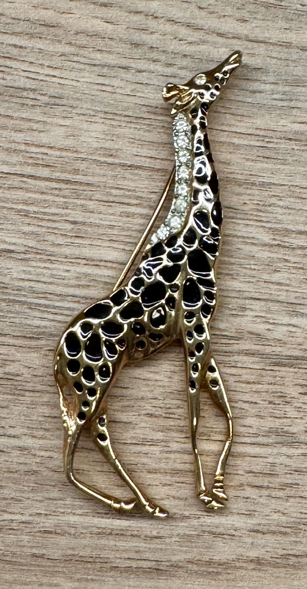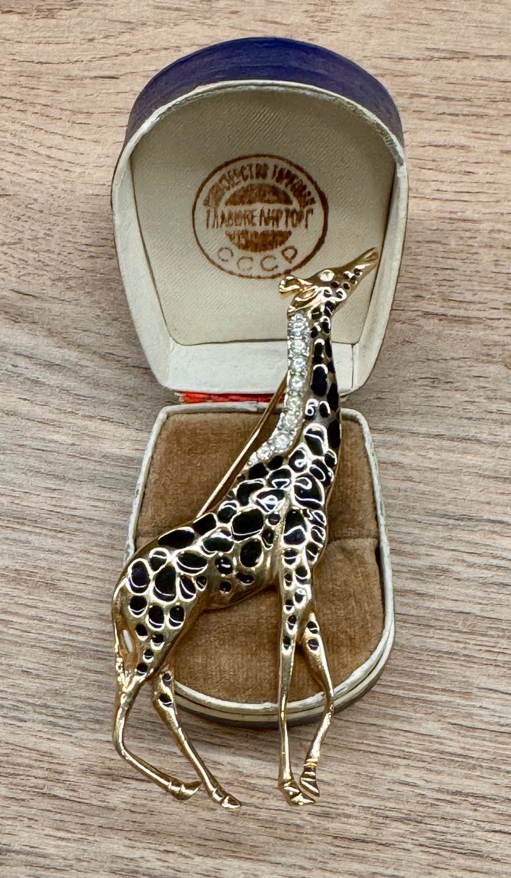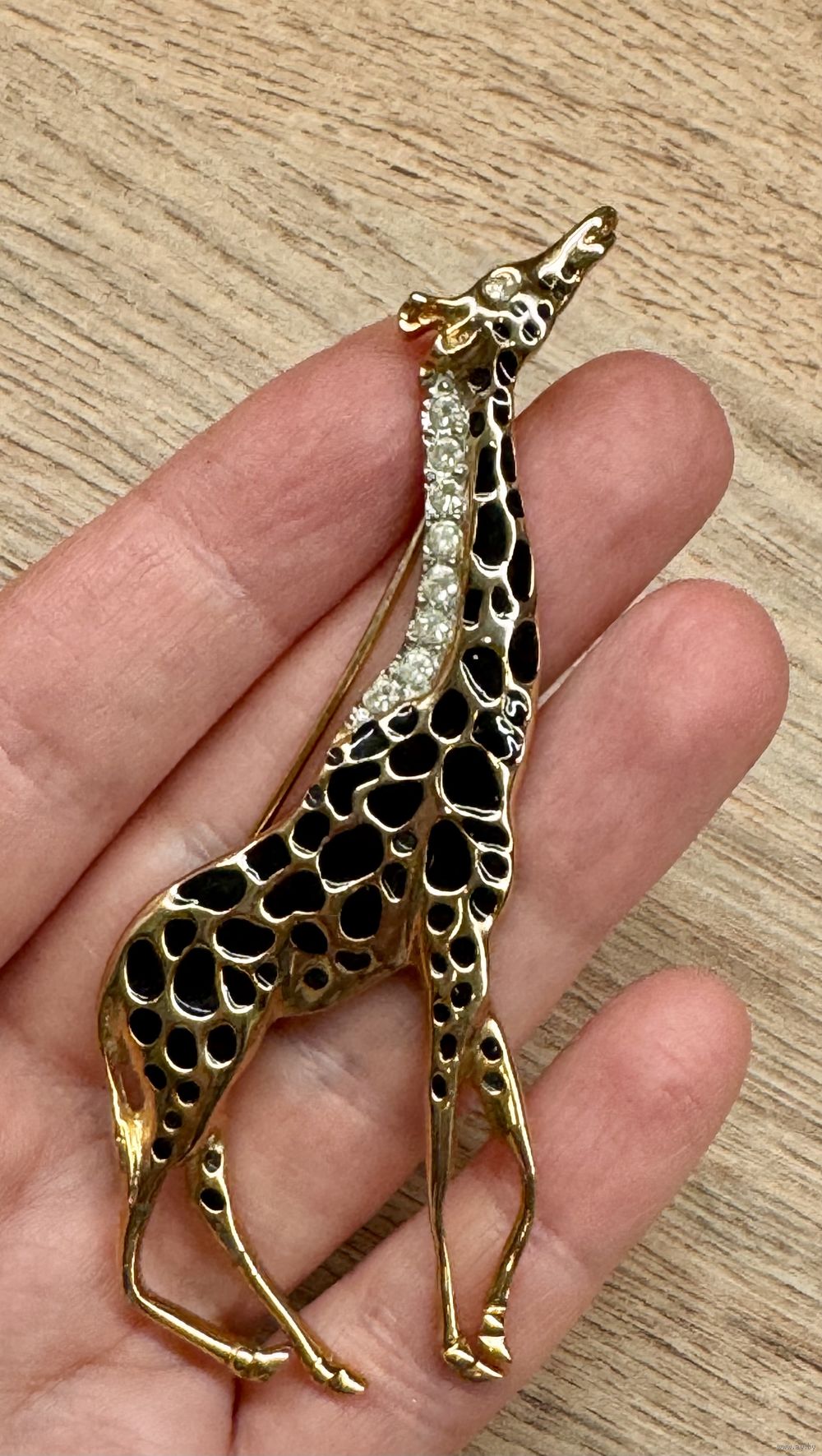 Крупная винтажная брошь с основой из металла золотого тона. На лицевой стороне эмаль и кристаллы. Размер 9х3см. Состояние хорошее.
