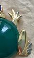 Крупная винтажная брошь от известного американского производителя бижутерии компании Craft. Украшение выполнено из сплава золотого тона (на лицевой стороне в нескольких местах на лапках имеется сход позолоты), вставка изумрудного цвета из плотного пластика, глаза из художественного стекла под лазурит. Размер броши 5х4,7см. Маркирована.