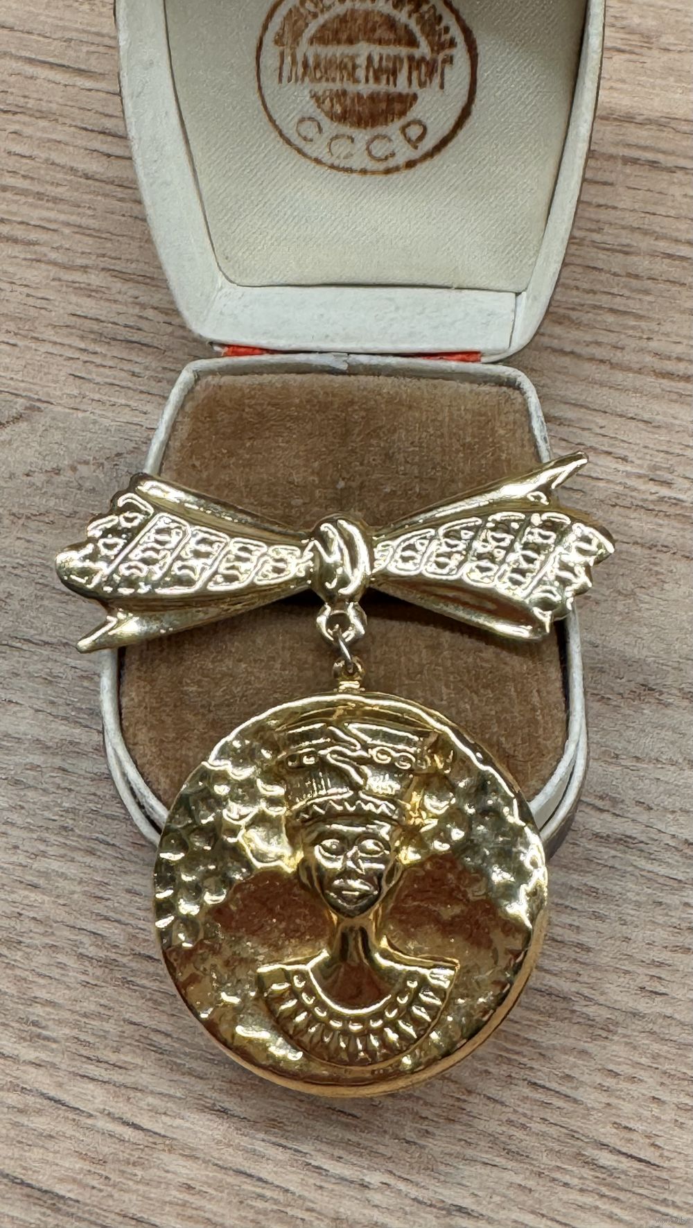Брошь-орден из металла золотого тона. Высота 5см. Брошь лёгкая, подойдёт для тонких тканей. Состояние хорошее.