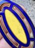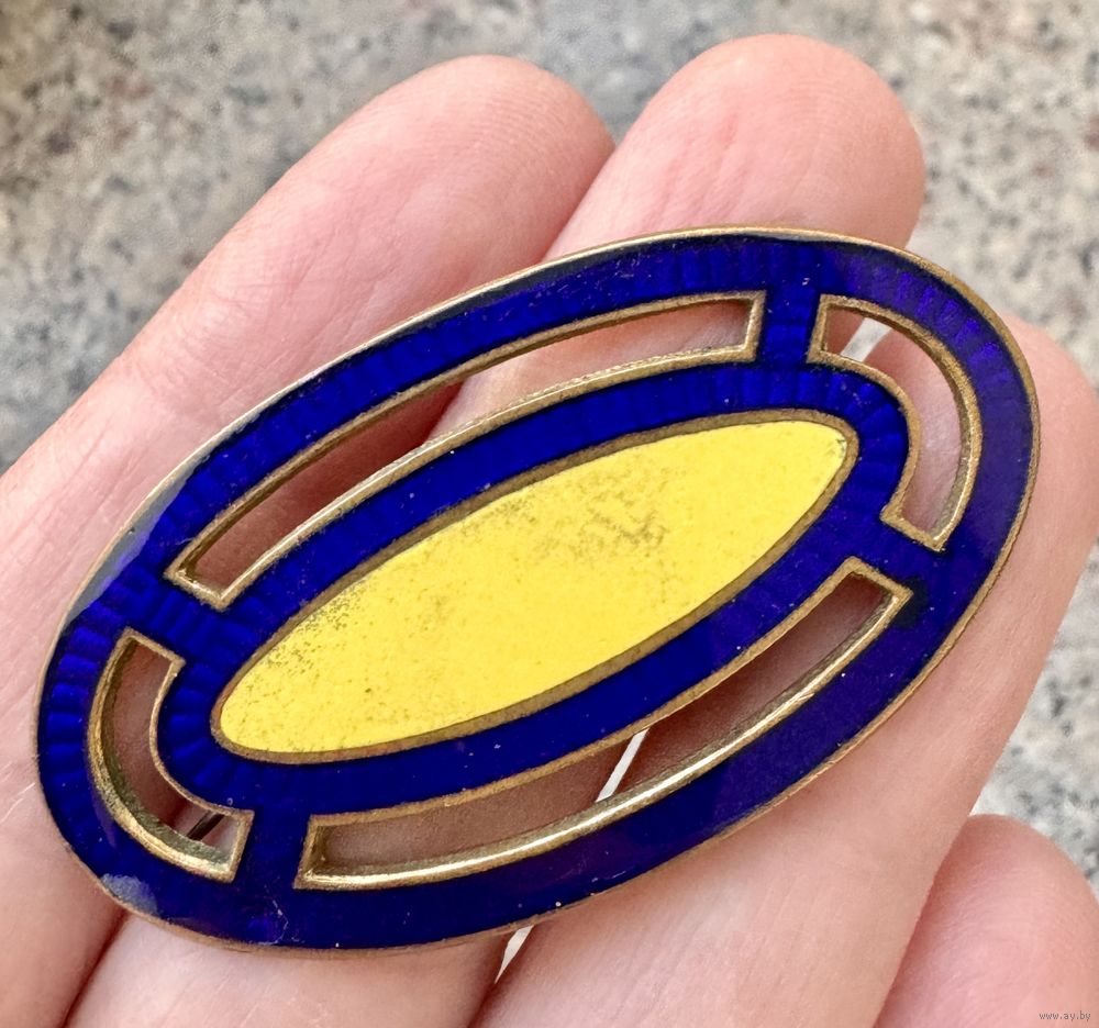Винтажная брошь с основой из меди. Лицевая сторона украшена яркими эмалями (на желтой имеются мелкие царапины). Размер 5х2,7см.