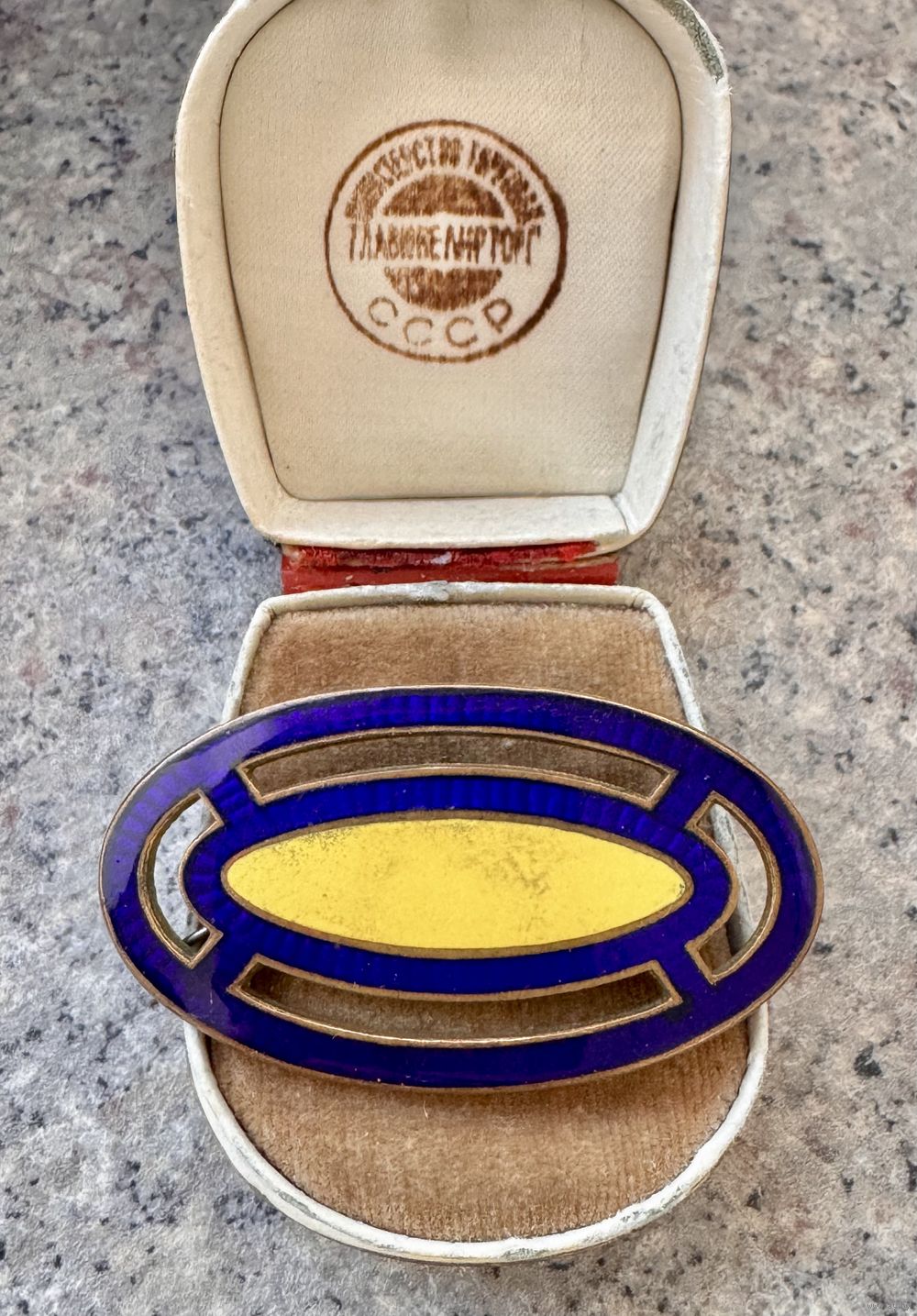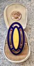 Винтажная брошь с основой из меди. Лицевая сторона украшена яркими эмалями (на желтой имеются мелкие царапины). Размер 5х2,7см.