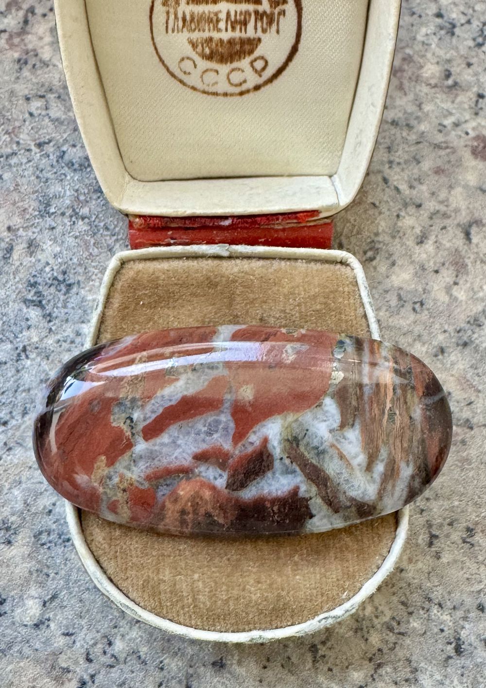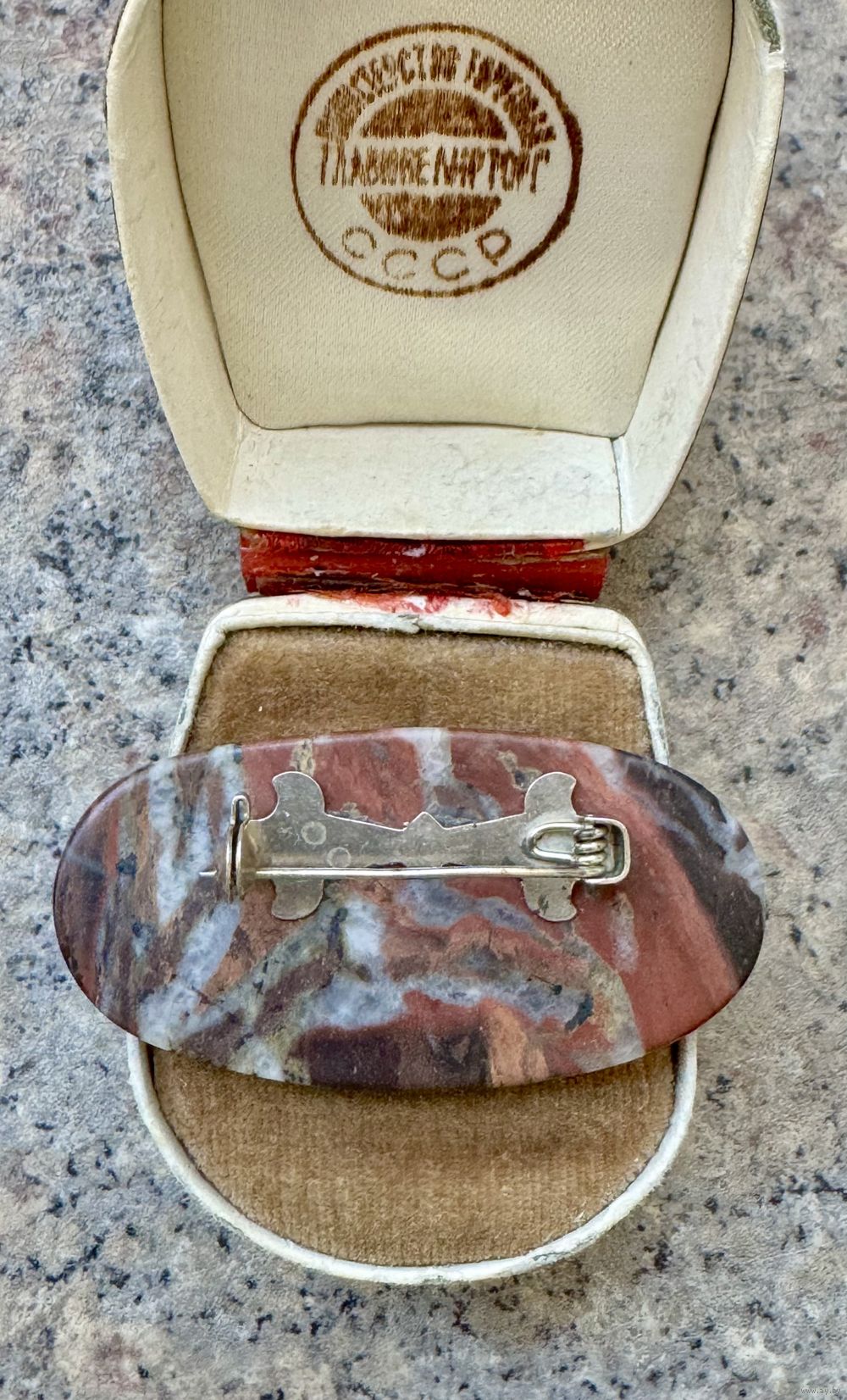 Винтажная брошь из камня, застёжка из мельхиора. Размер 5х2,4см. Состояние хорошее.