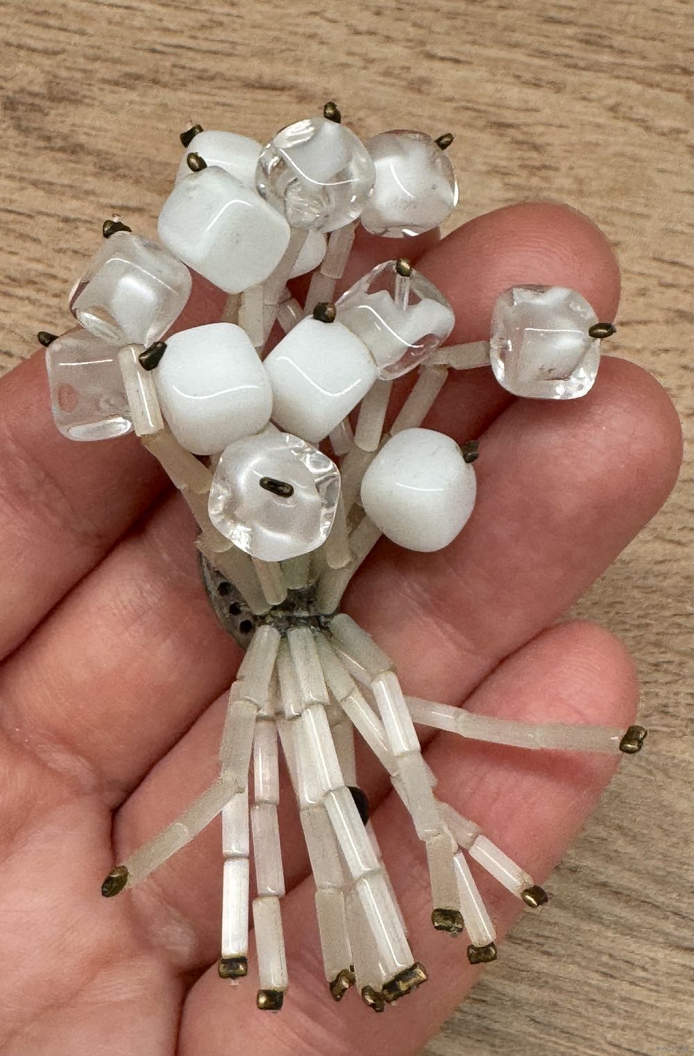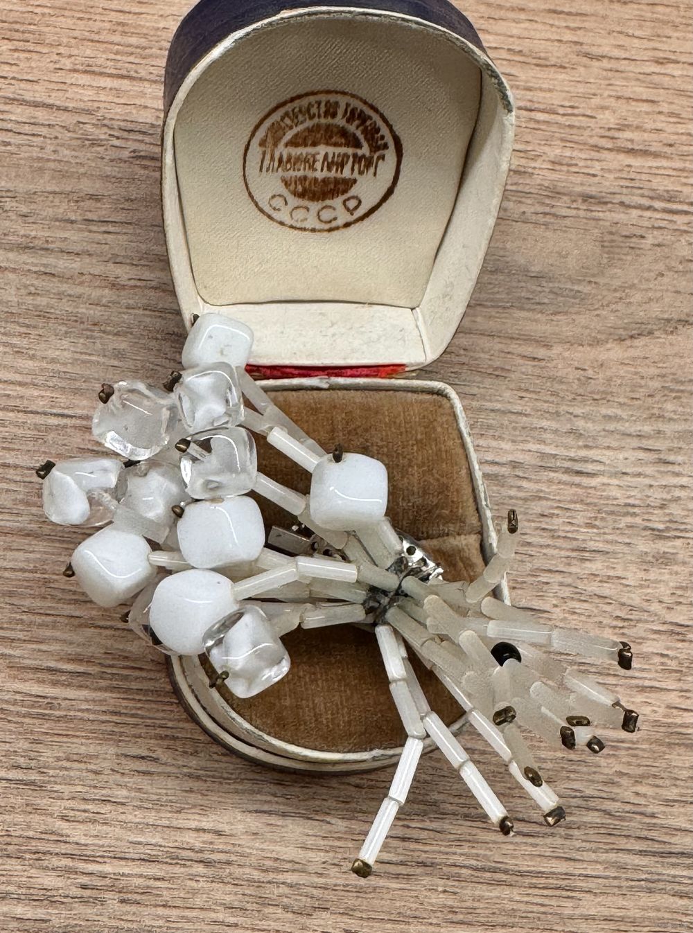 Винтажная брошь из стекла и сатинового бисера. Высота 7см. Состояние хорошее.
