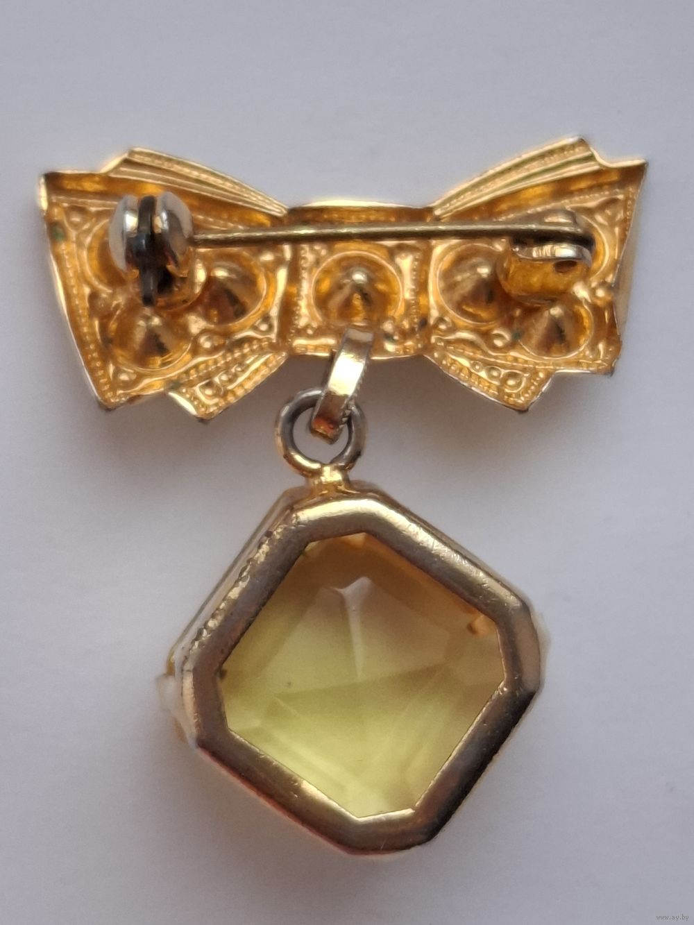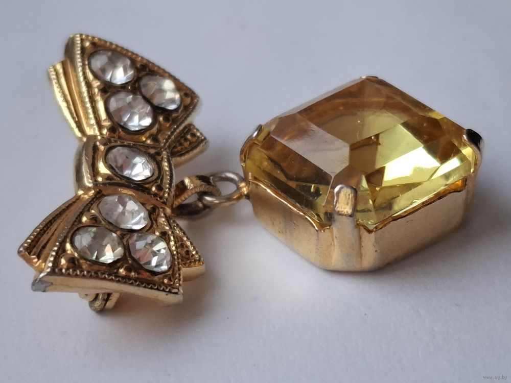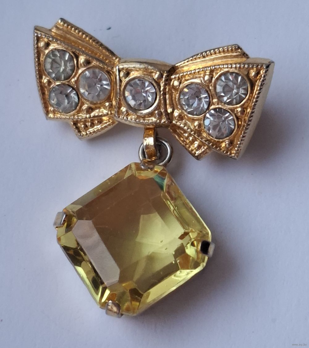 Брошь Бант с кристаллом цитринового цвета. Чехословакия