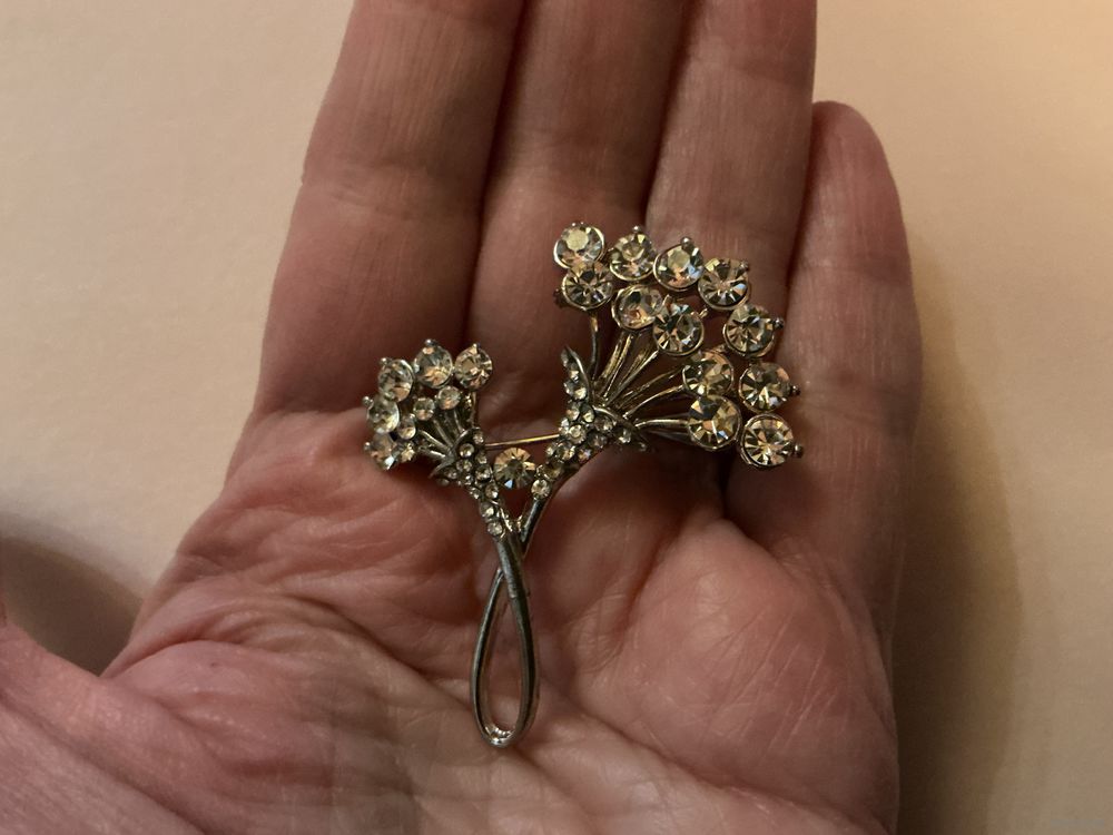 Красивая брошь , металл под серебро, есть клеймо , неразборчиво, 5,5 см х 4 см