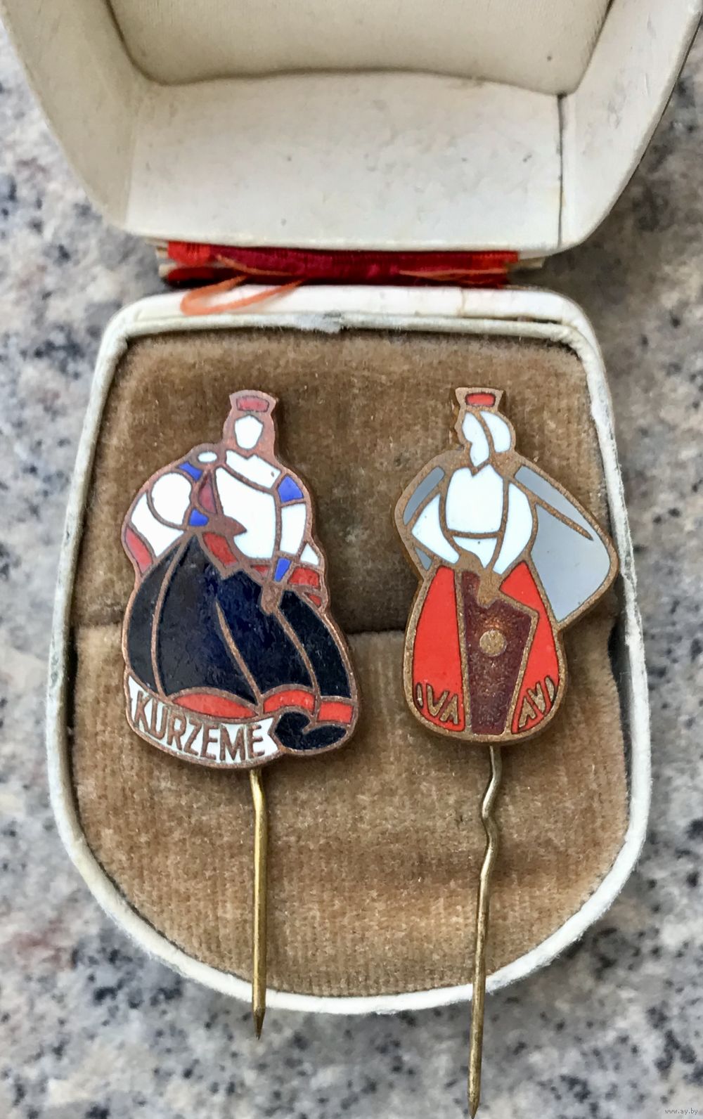 Винтажные броши-булавки на тему Латвии. Основа сделана из меди, лицевая сторона покрыта эмалью. Высота с иглой 4,5см. Состояние хорошее.