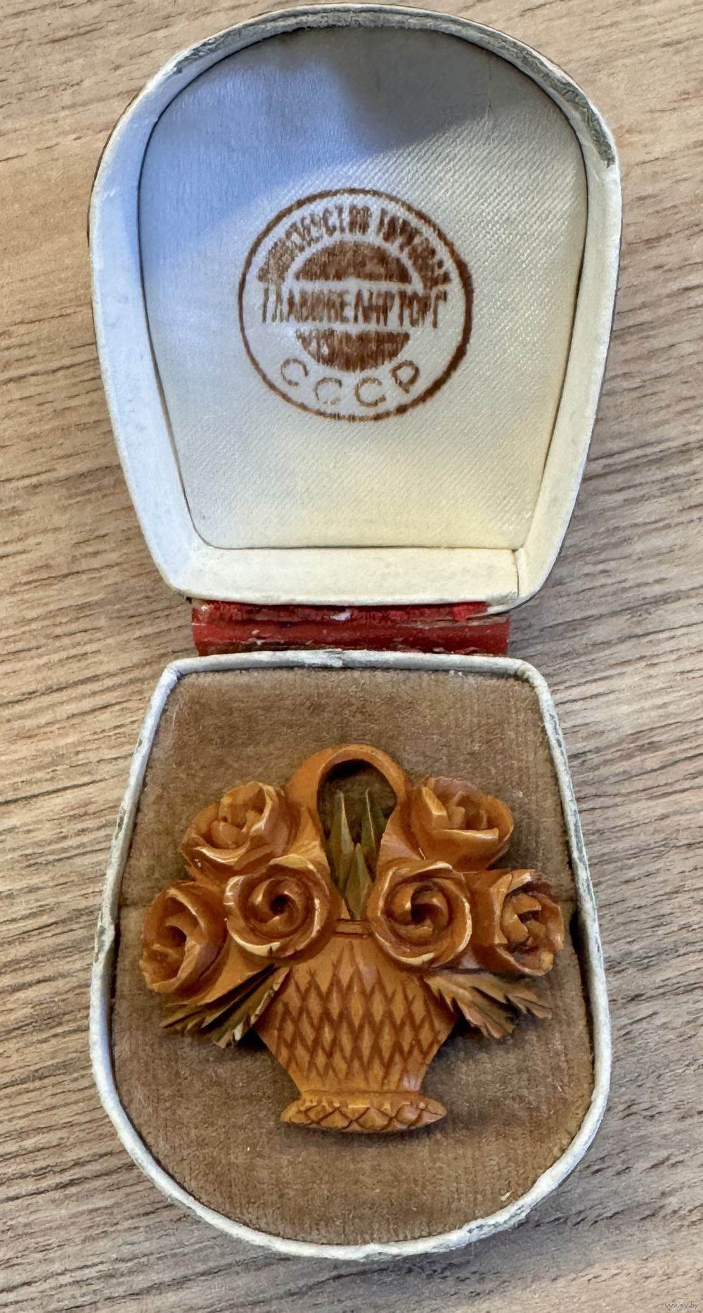 Брошь антикварная из резного бакелита. Размер 3х3,3см. Состояние хорошее.