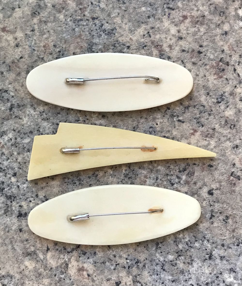 Винтажные броши из кости. Размер овальных 6х2см., размер треугольной 6,8х2,5см. Состояние хорошее.