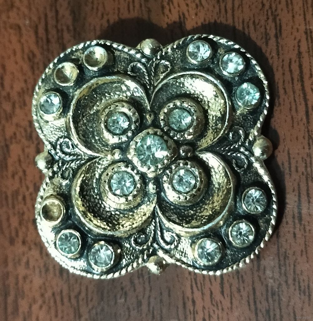 Вы получите именно ту брошь, которую видите на фото. Застежка сломана. Нет пары камней.