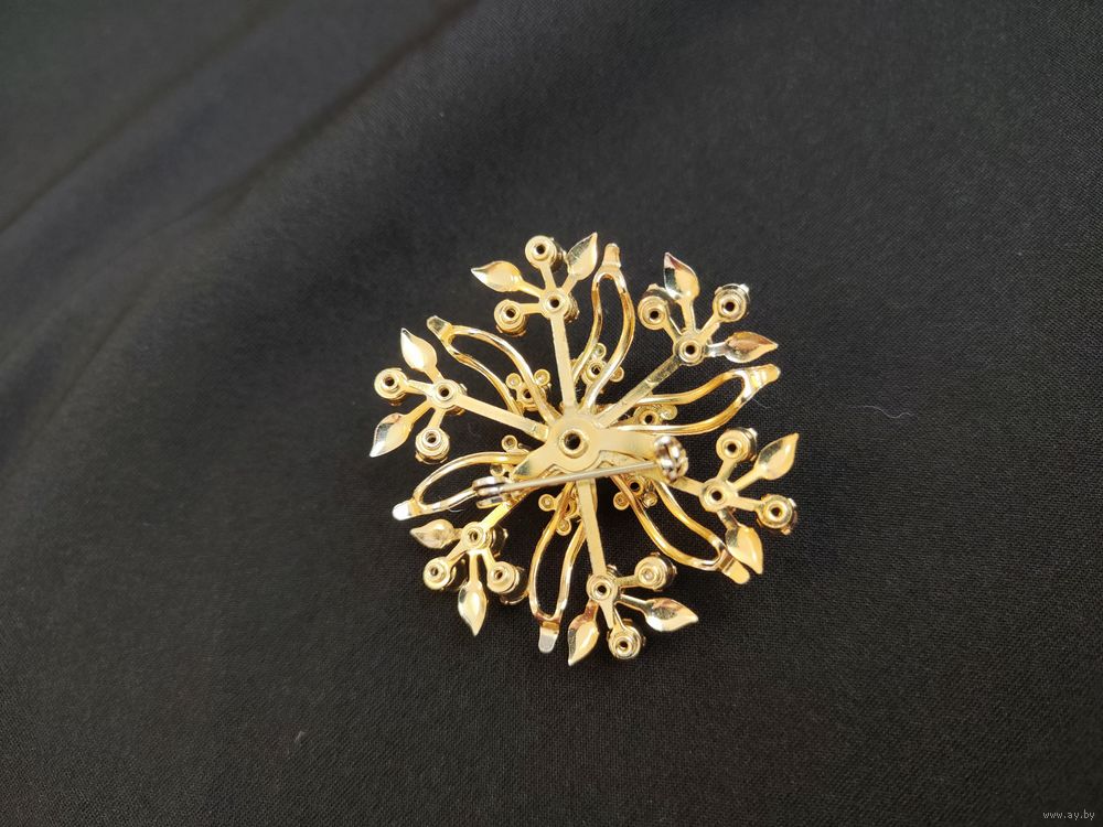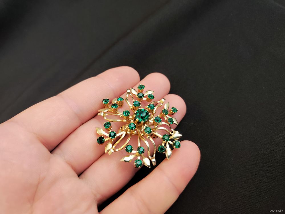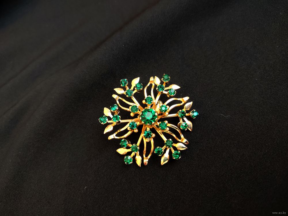 Винтажная брошь с зелёными стразами
