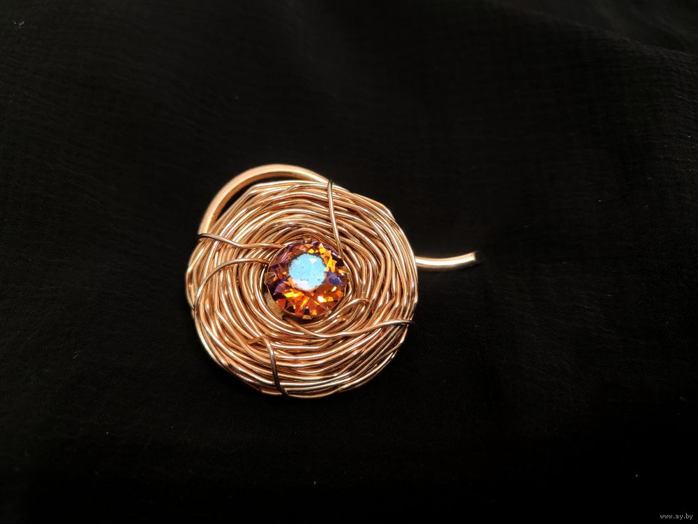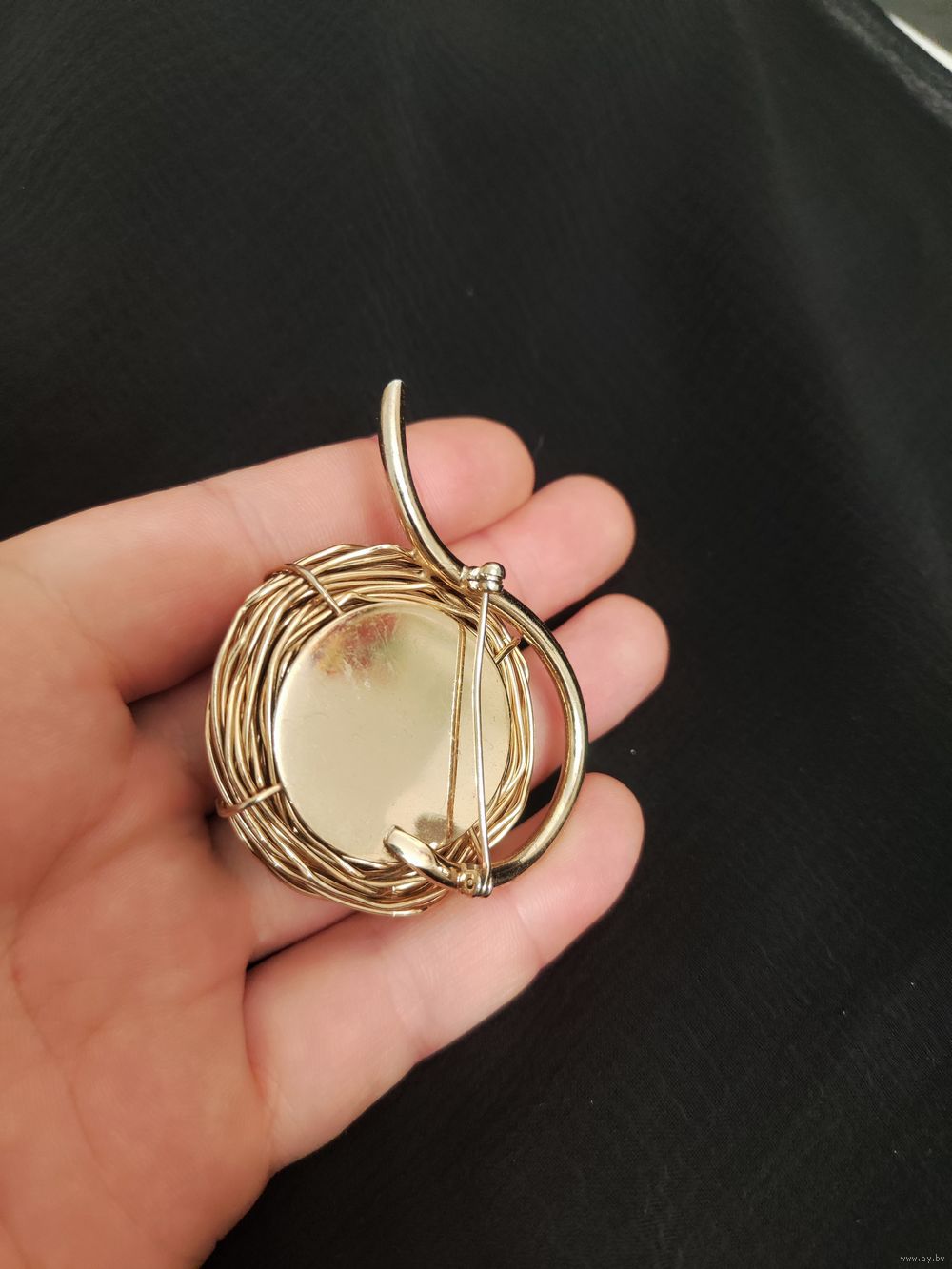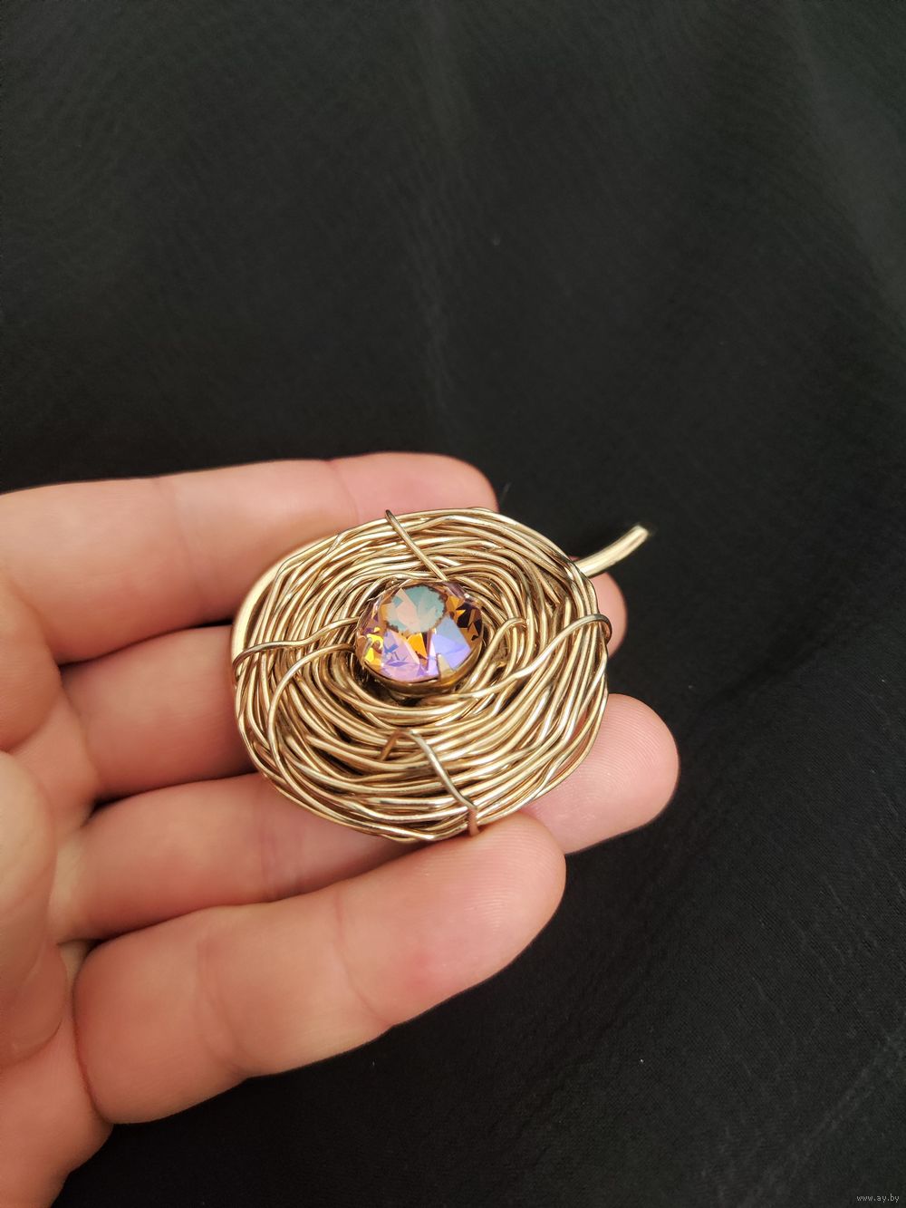 Объемная, тяжёлая, брошь с накрученной проволки золотого тона