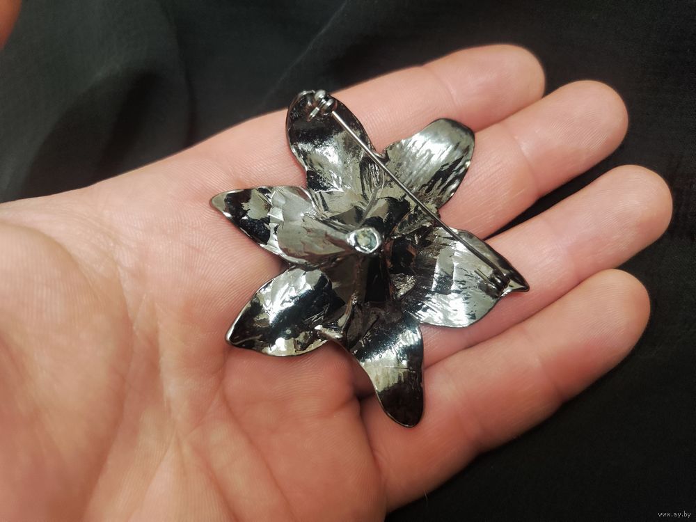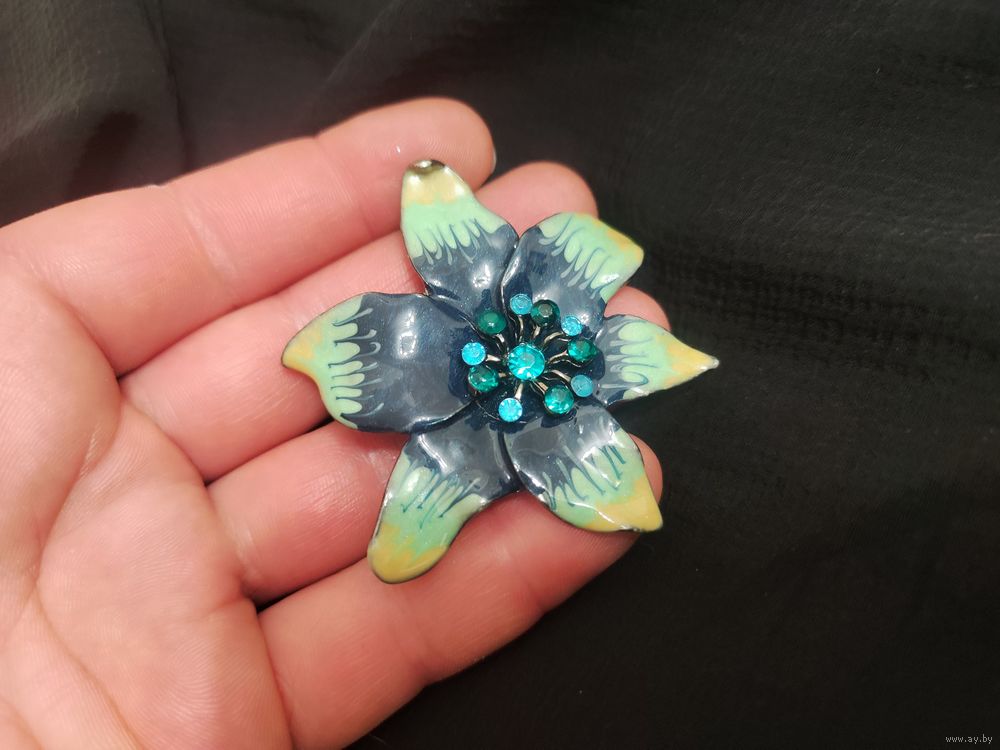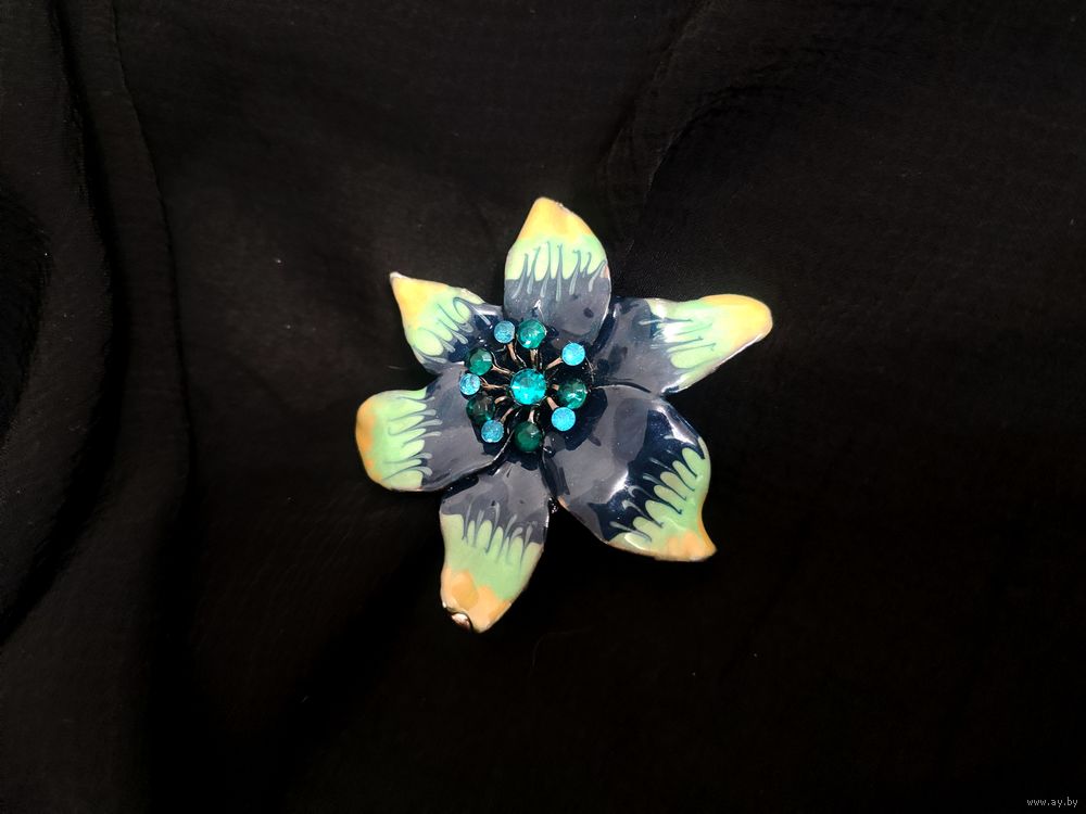 брошь в стиле модерн с эмалью и бирюзовыми стразами