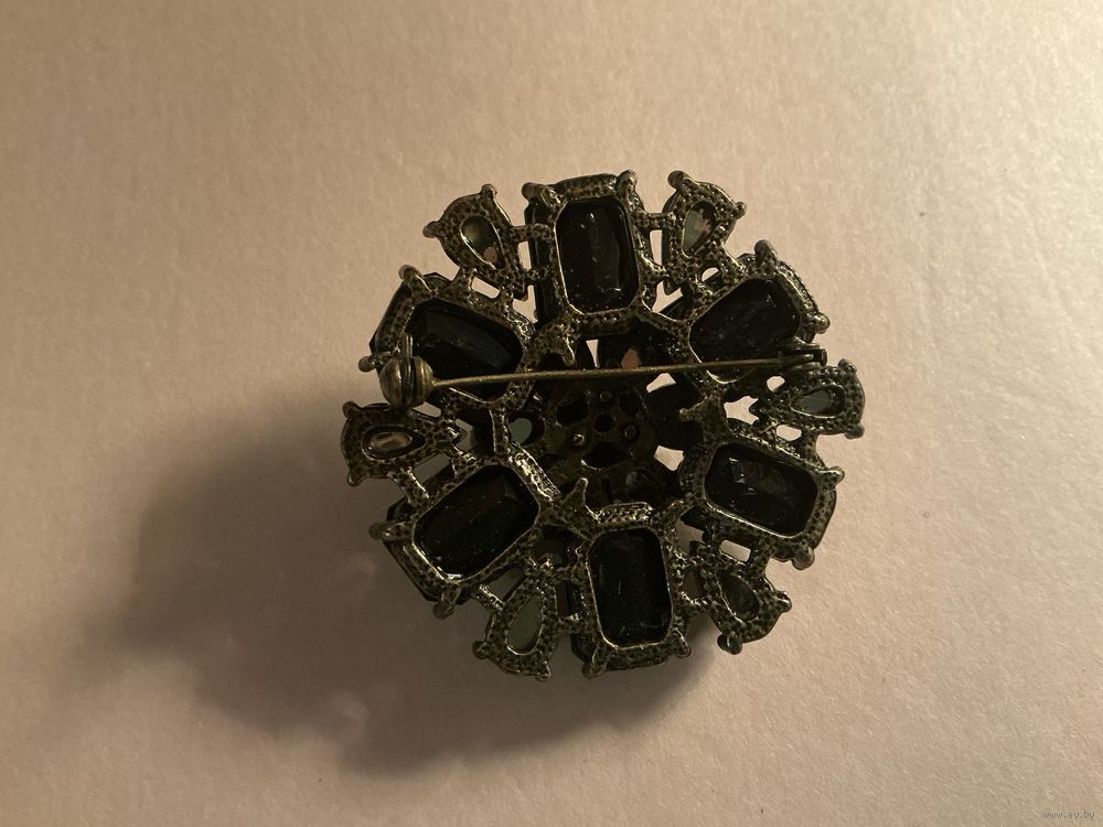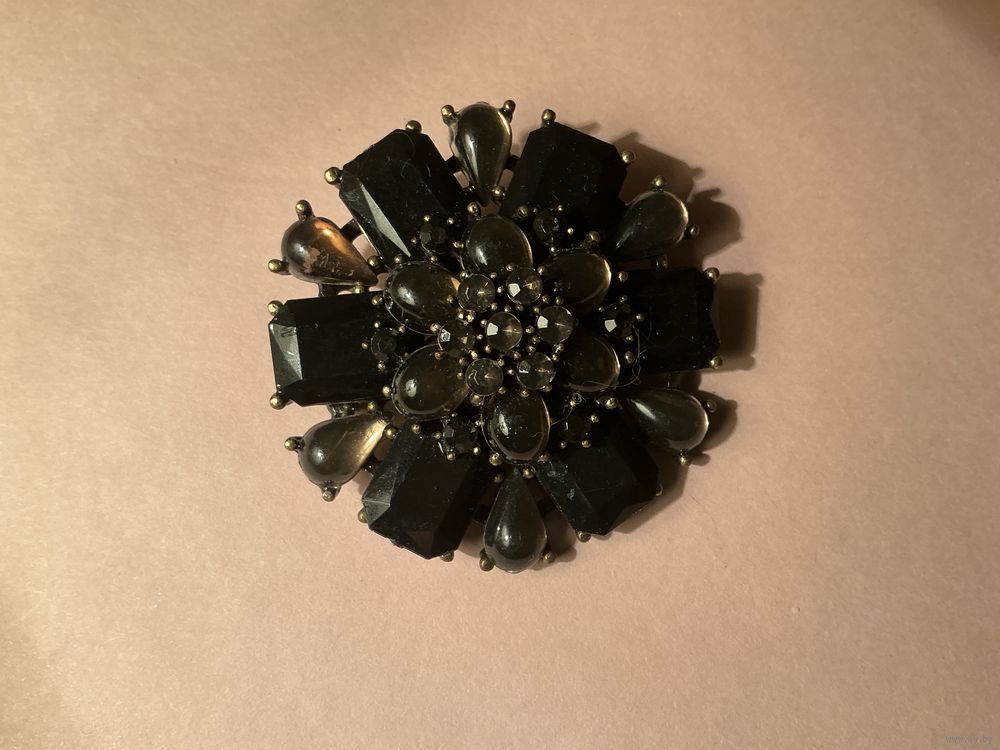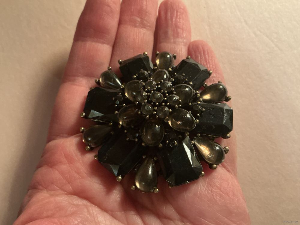 Крупная брошь , вставки черного и оливкового цвета, диаметр 5,5 см