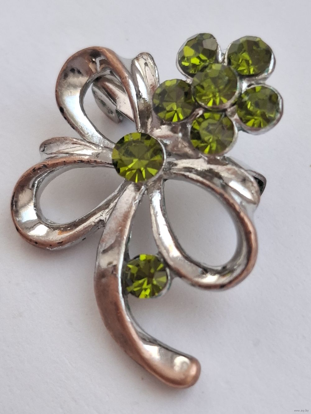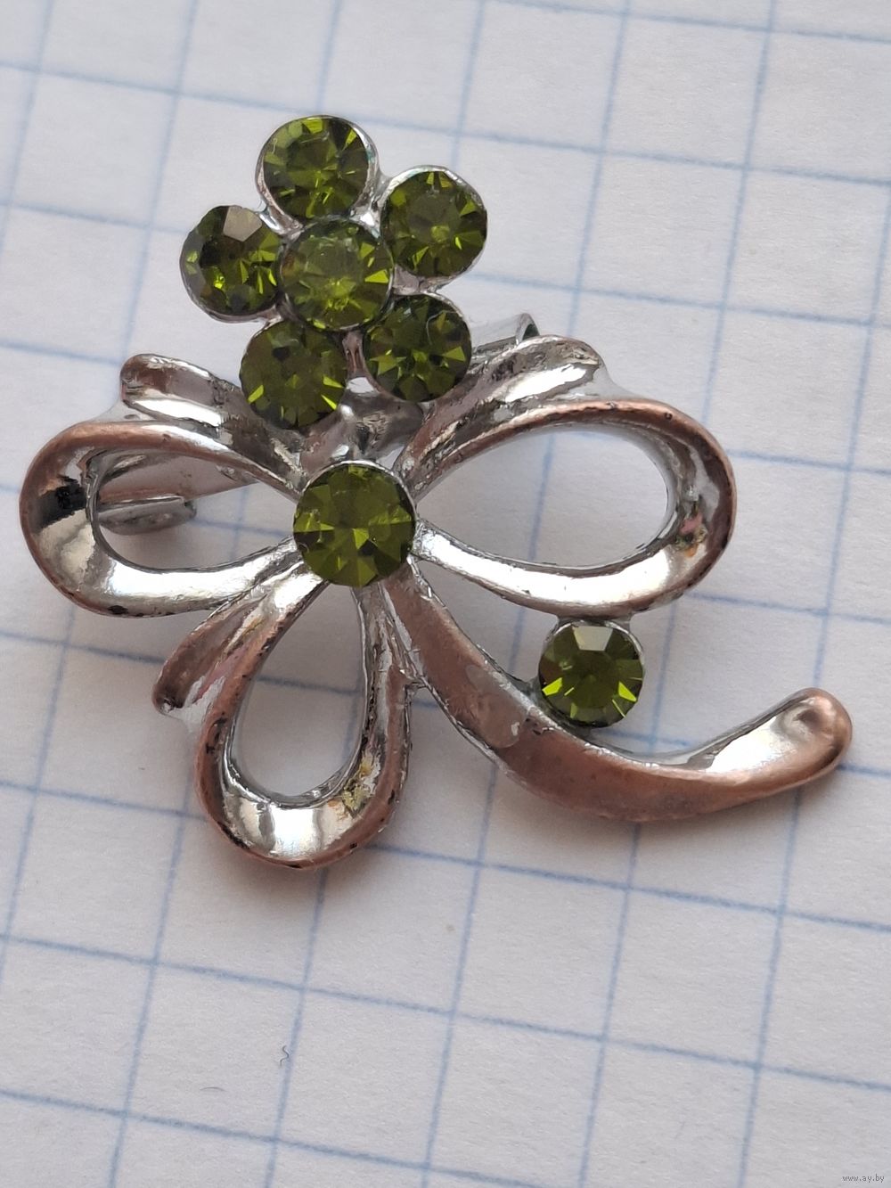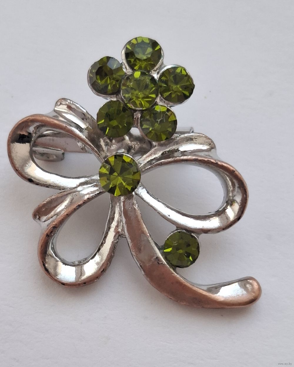Брошь ''Цветок'' с зелеными кристаллами, 80-е год