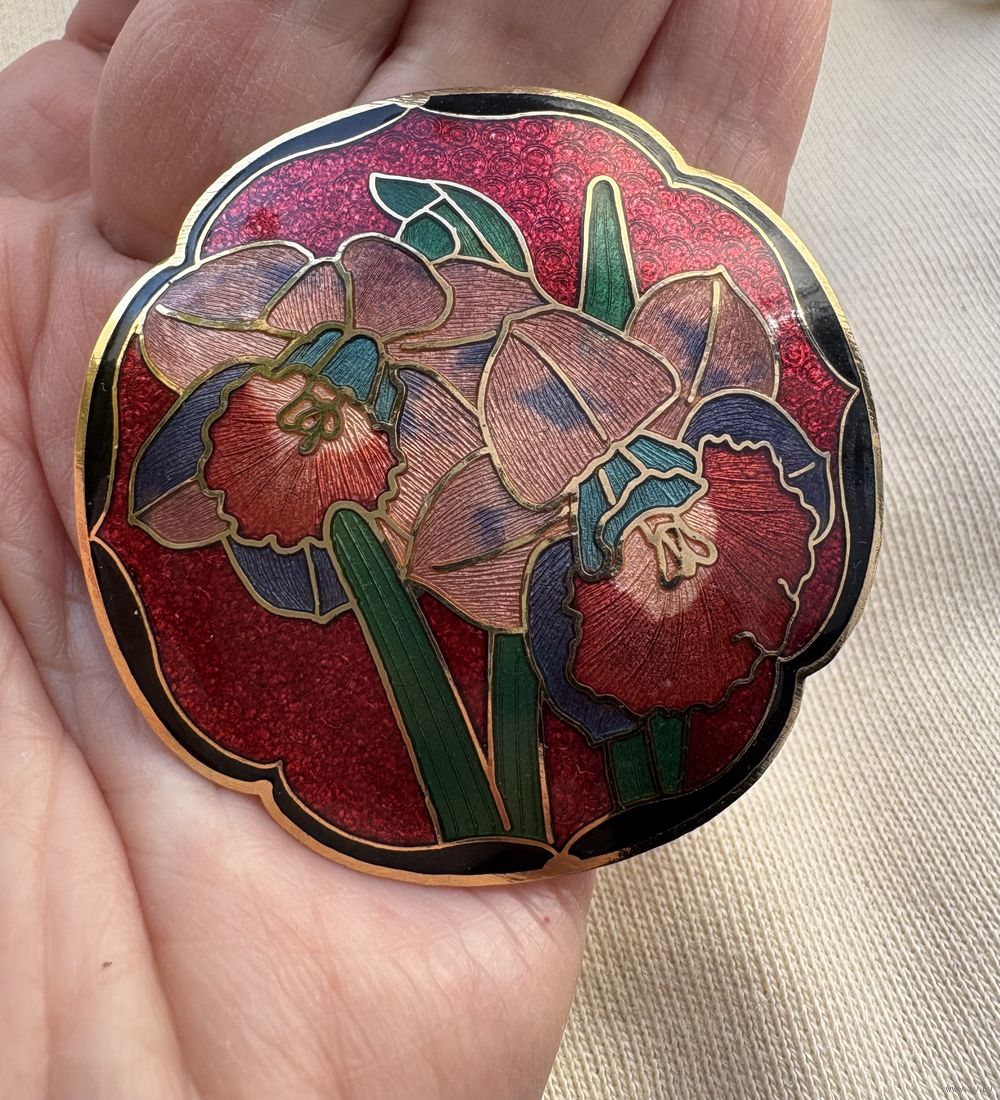 Большая красивая брошь эмаль , диаметр 5 см