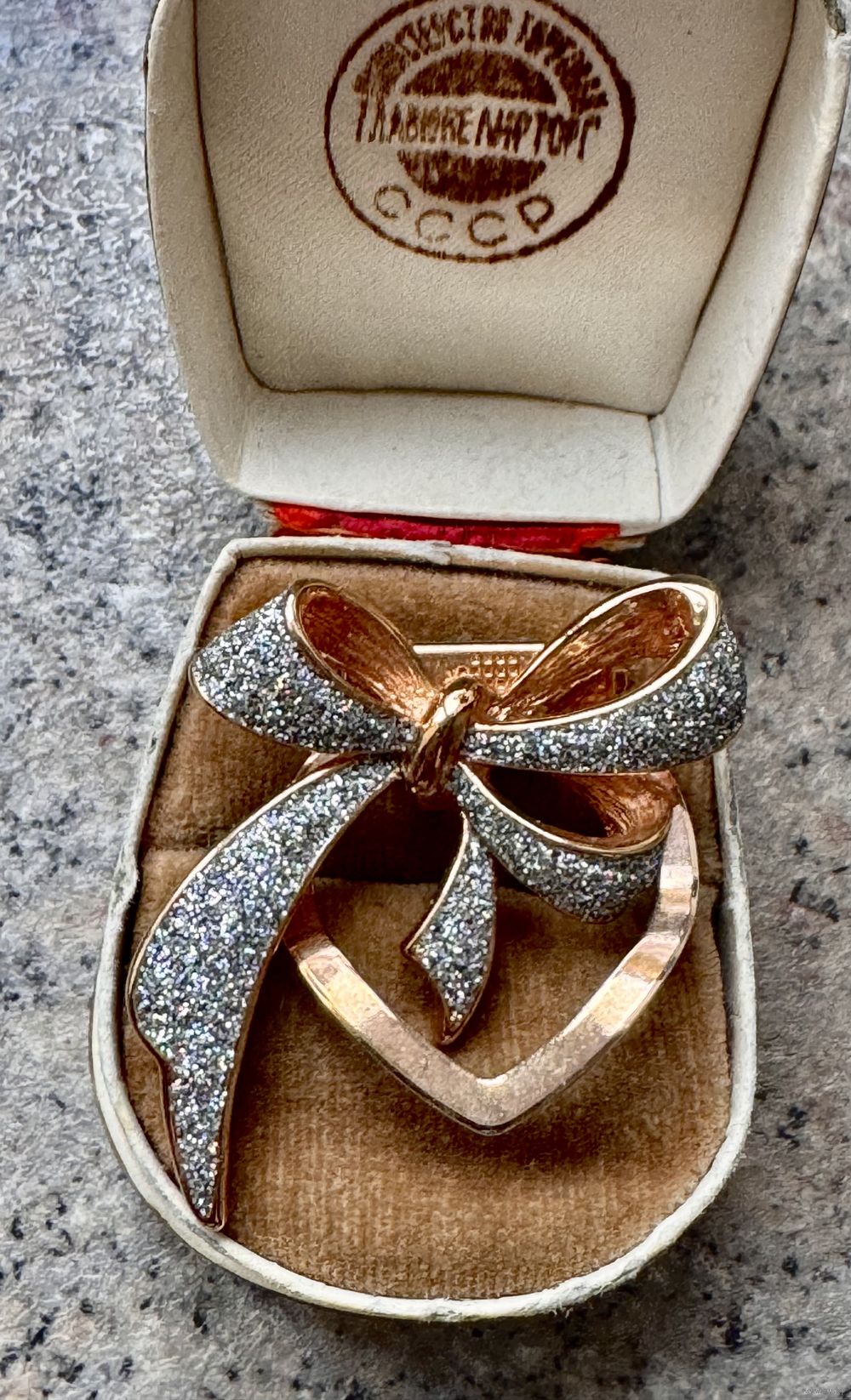 Винтажное украшение в форме бантика. Размер 5х3,5см. Состояние хорошее.
