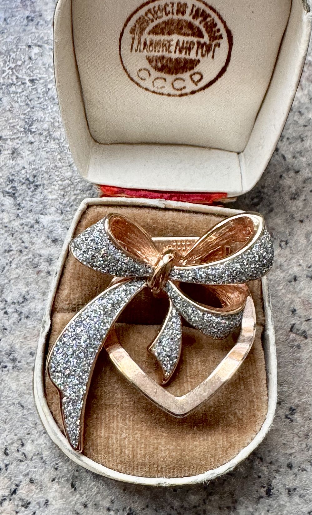 Винтажное украшение в форме бантика. Размер 5х3,5см. Состояние хорошее.