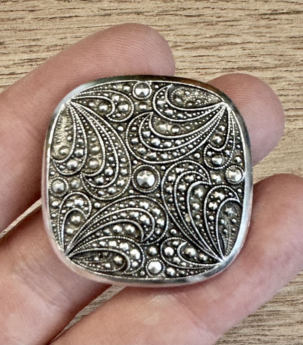Винтажный зажим для платка из металла серебристого тона. Размер 3х3см.Состояние хорошее.