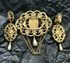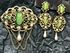 Крупный эффектный комплект из Чехословакии, 1970-е гг. Основа из латуни, вставки из художественного стекла с эффектом сапфиритов, ювелирное стекло и бусины под жемчуг. Высота броши с цепочками 8см., ширина 6,7см., высота клипсы 7,3см. Состояние хорошее.
