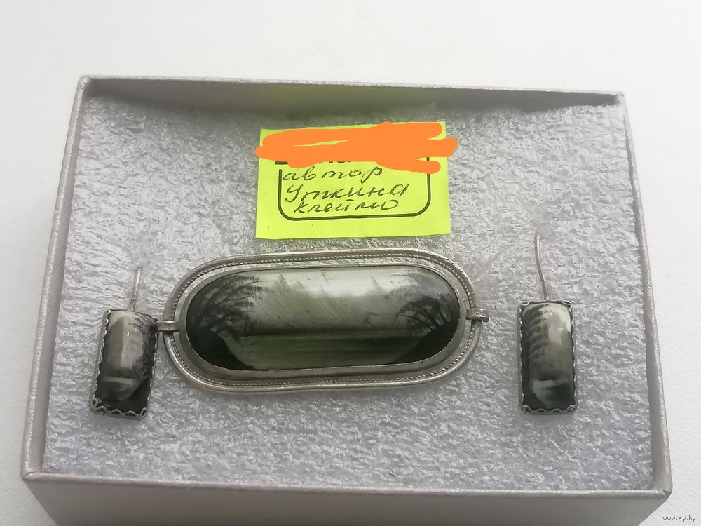 Брошь и серьги, Финифть, авторская, автор Уткина
