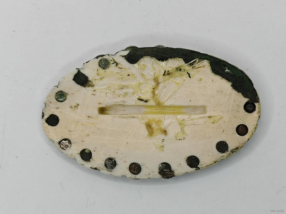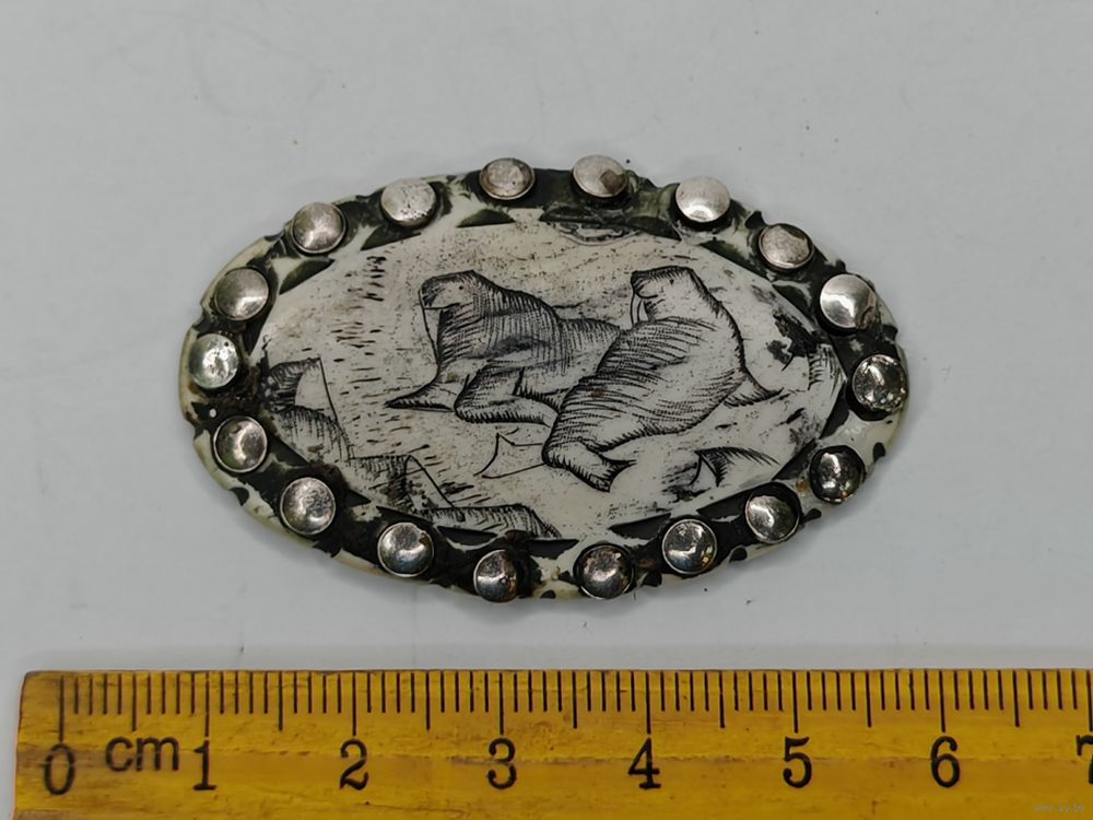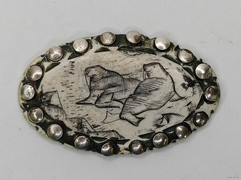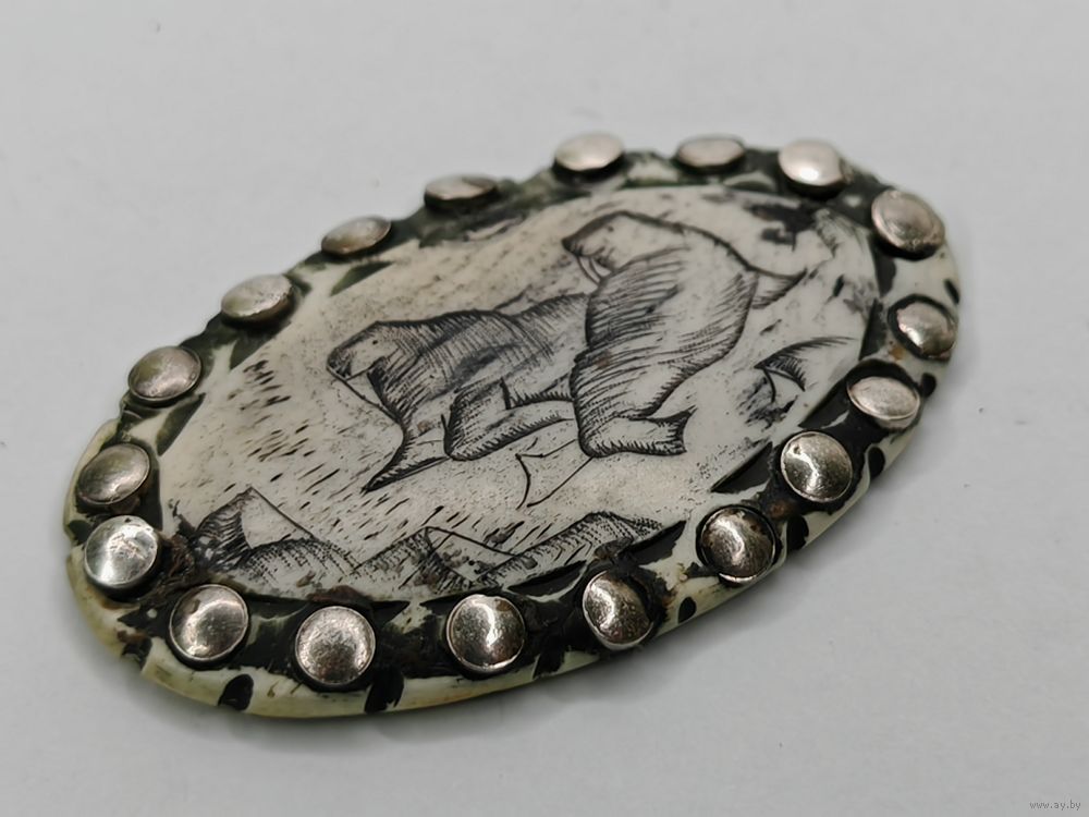 Брошь из кости. Вставки серебро. Ручная работа. в ремонт. Как есть. С рубля.
