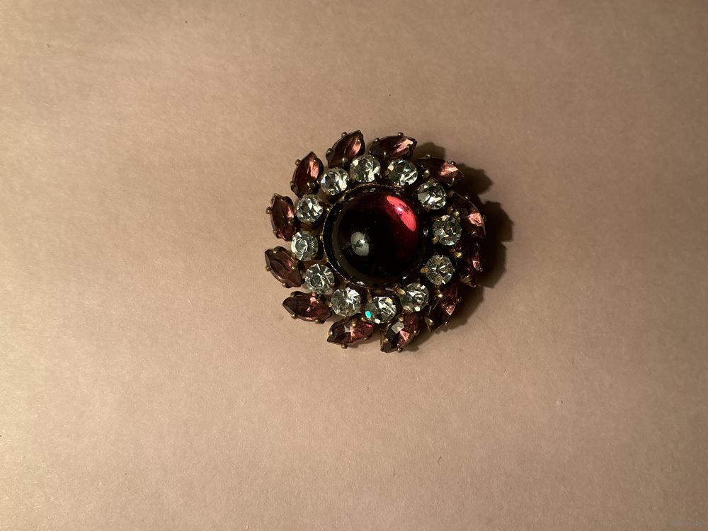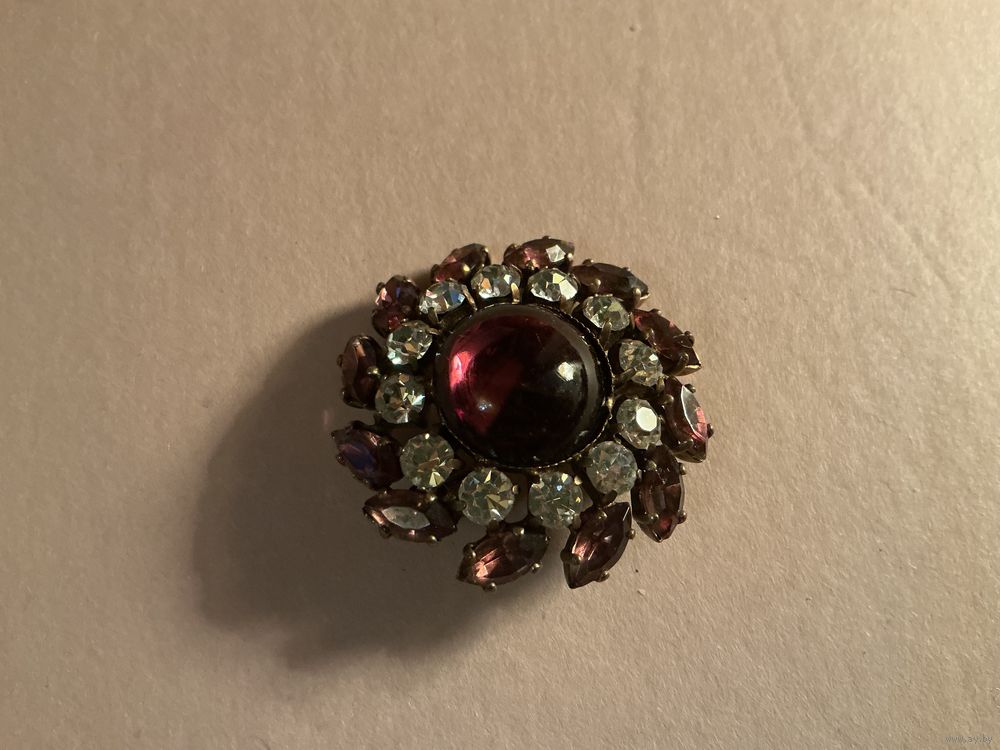Красивая нечастая брошь , купольная форма , центр малиново- сиреневый цвет , диаметр 3,4 см