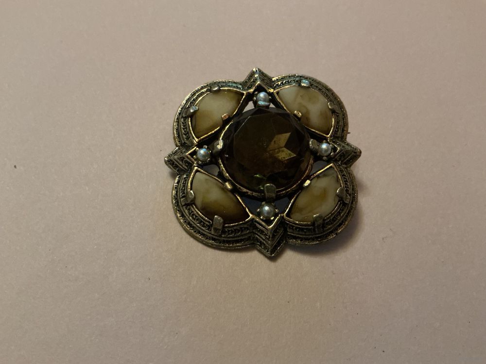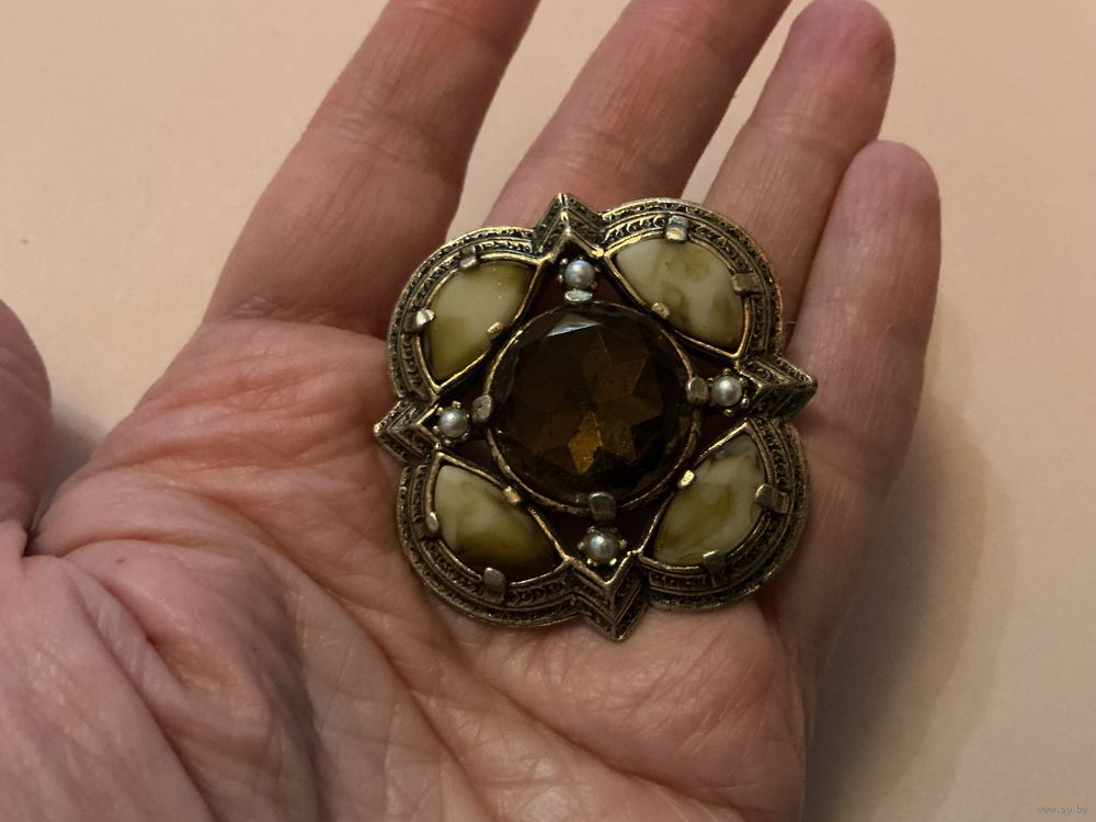 Красивая крупная брошь , 5 см х 5 см , маркирована, вставки под агат