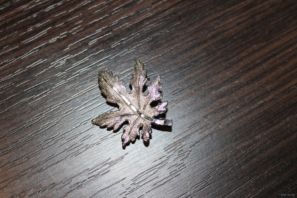 Брошь "Кленовый листочек" , металл, размер 4 см, дефекты не обнаружены.