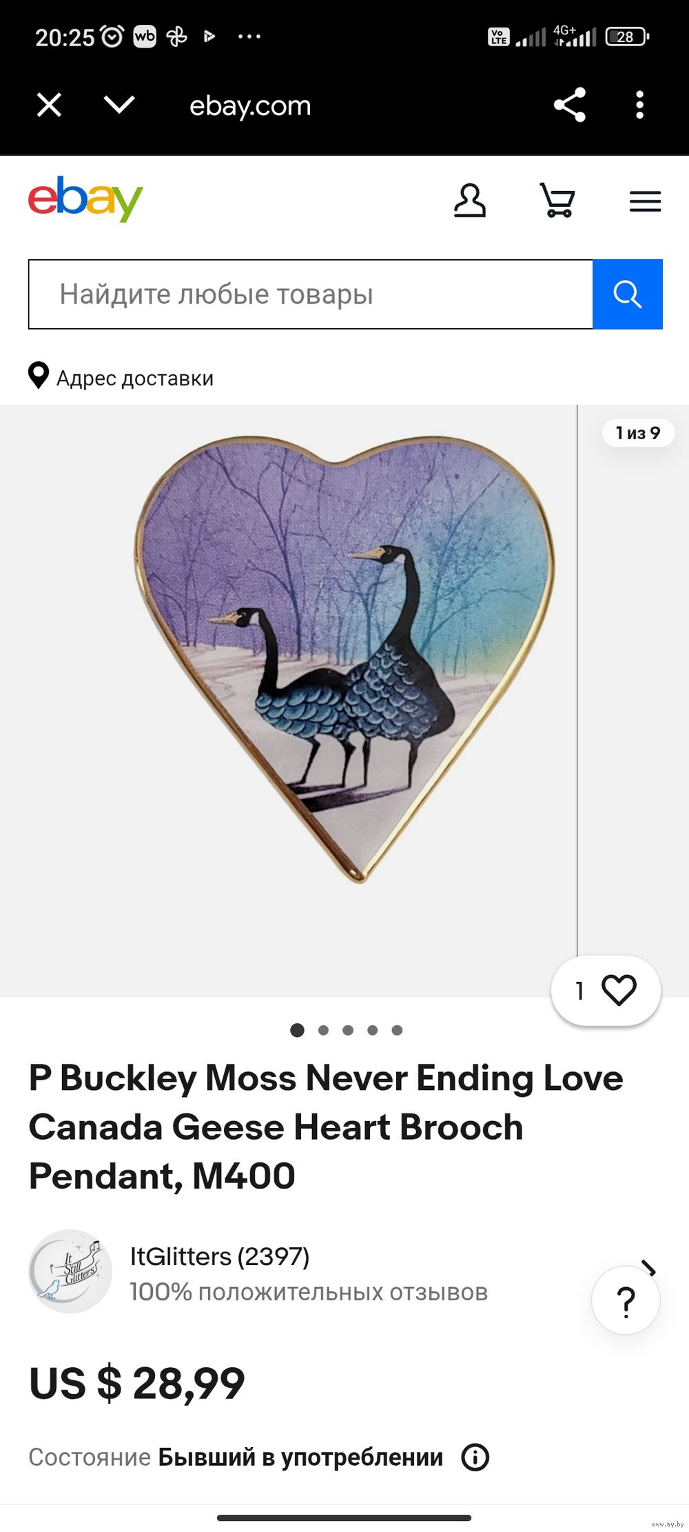 брошь-кулон под названием «Never Ending Love» (Вечная любовь), созданная американской художницей П. Бакли Мосс (P. Buckley Moss).