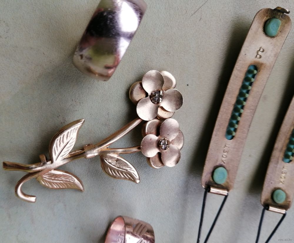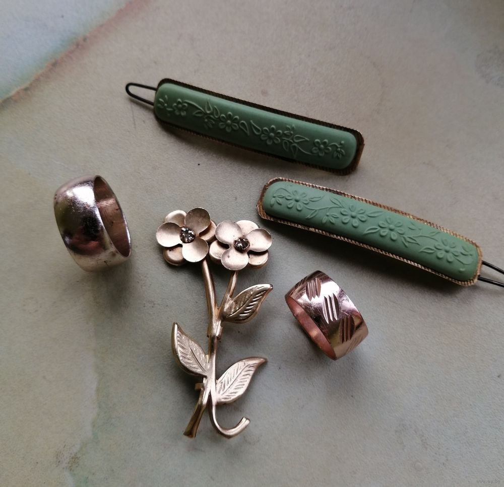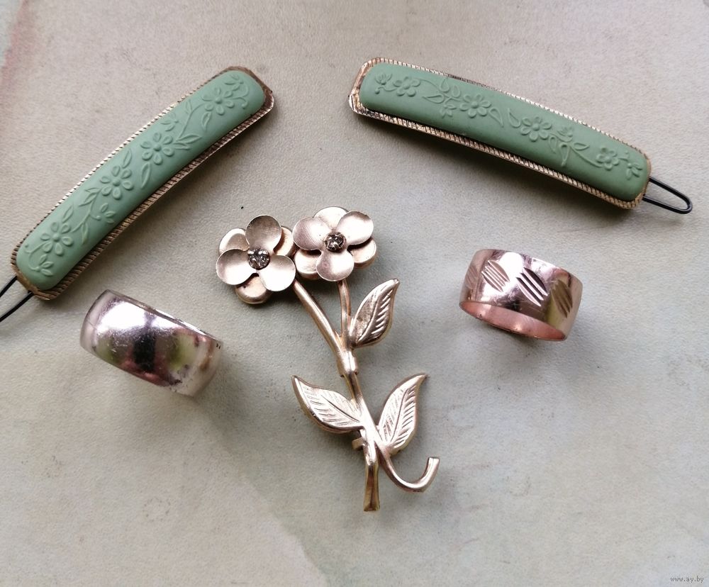 Брошь ( латунь), 2 колечка, 2 заколки из СССР