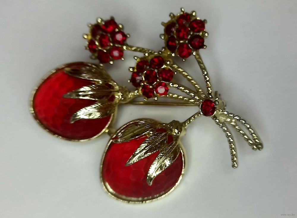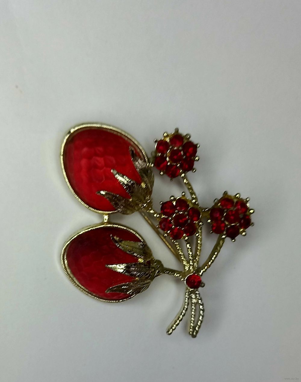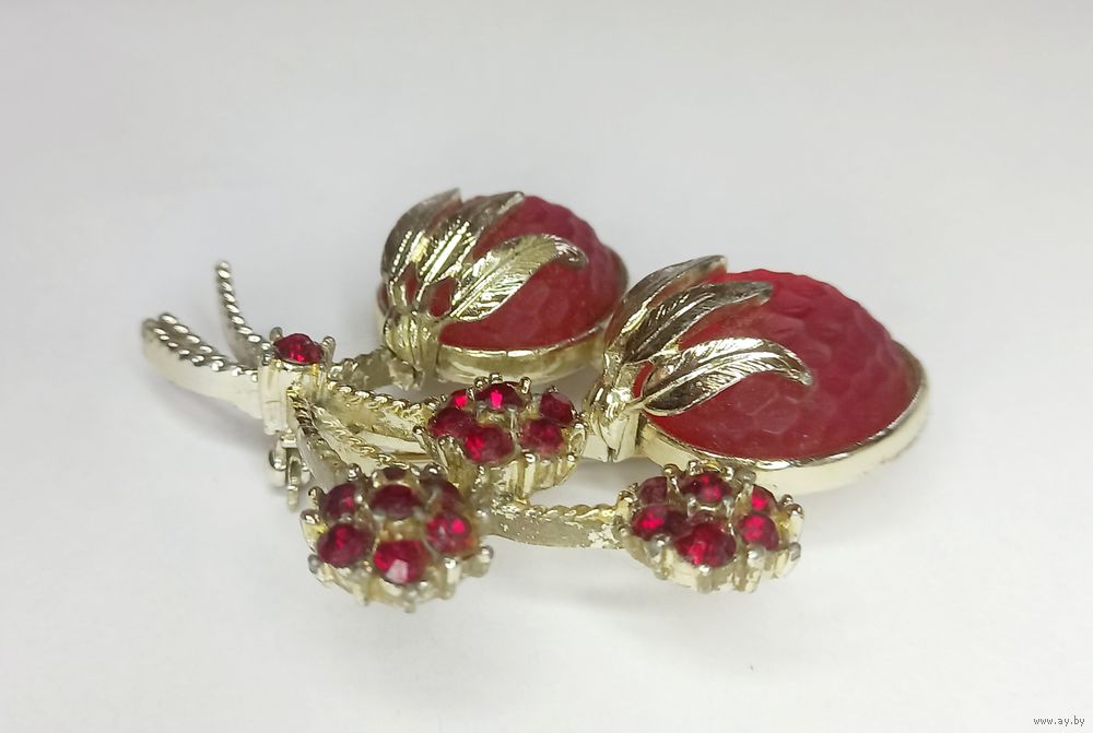 Визитная карточка Sarah Cov- брошь Клубника со вставками из морозного стекла. Р-р 6х4.7 см. Маркирована