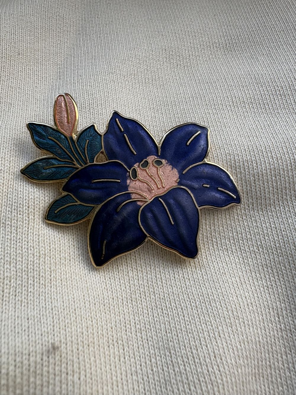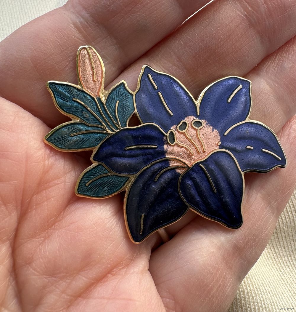 Красивая резная брошь Лилия эмаль , 5 см х 3,5 см , без потерь