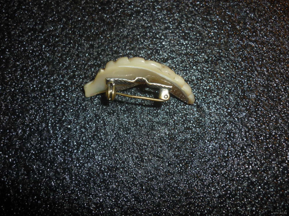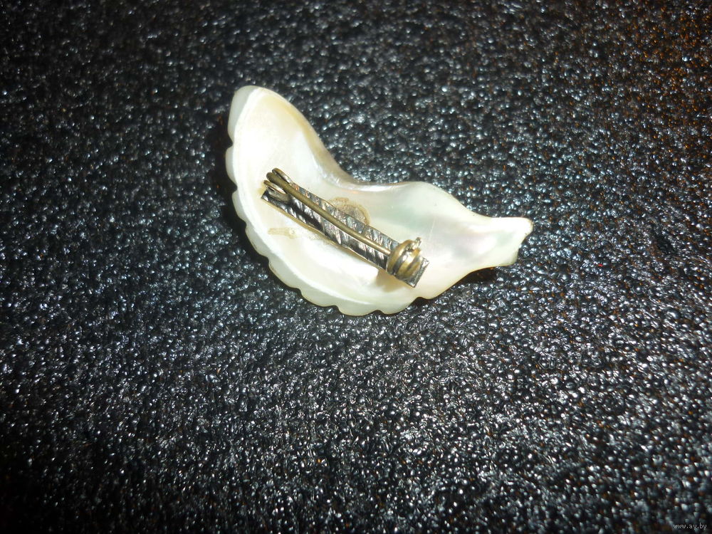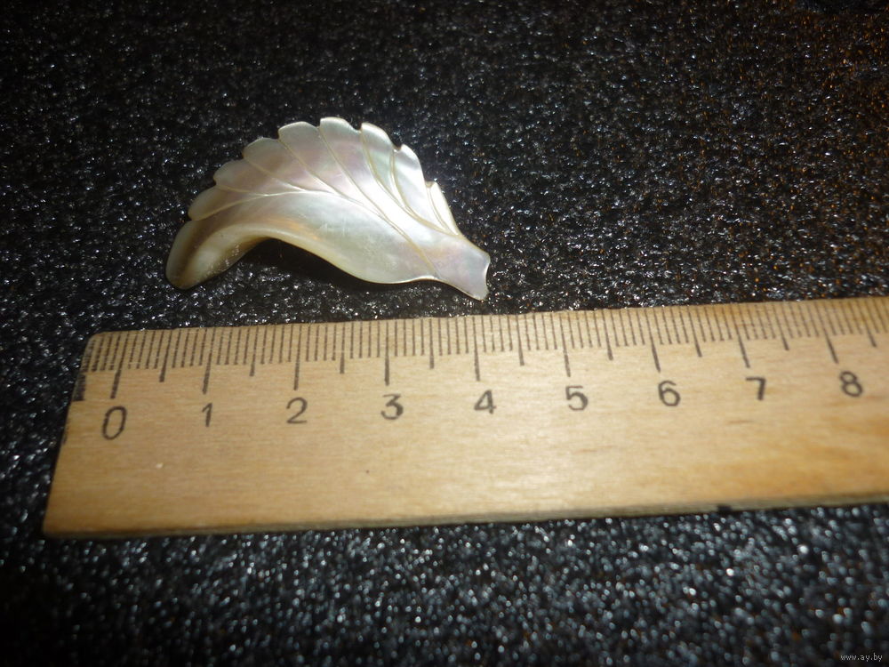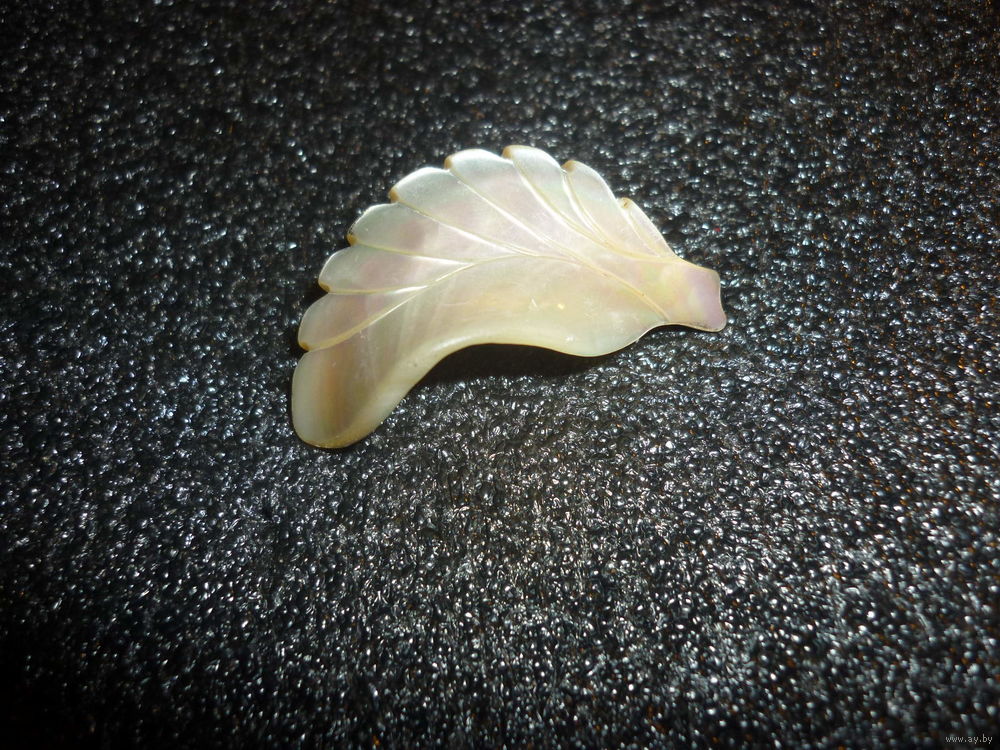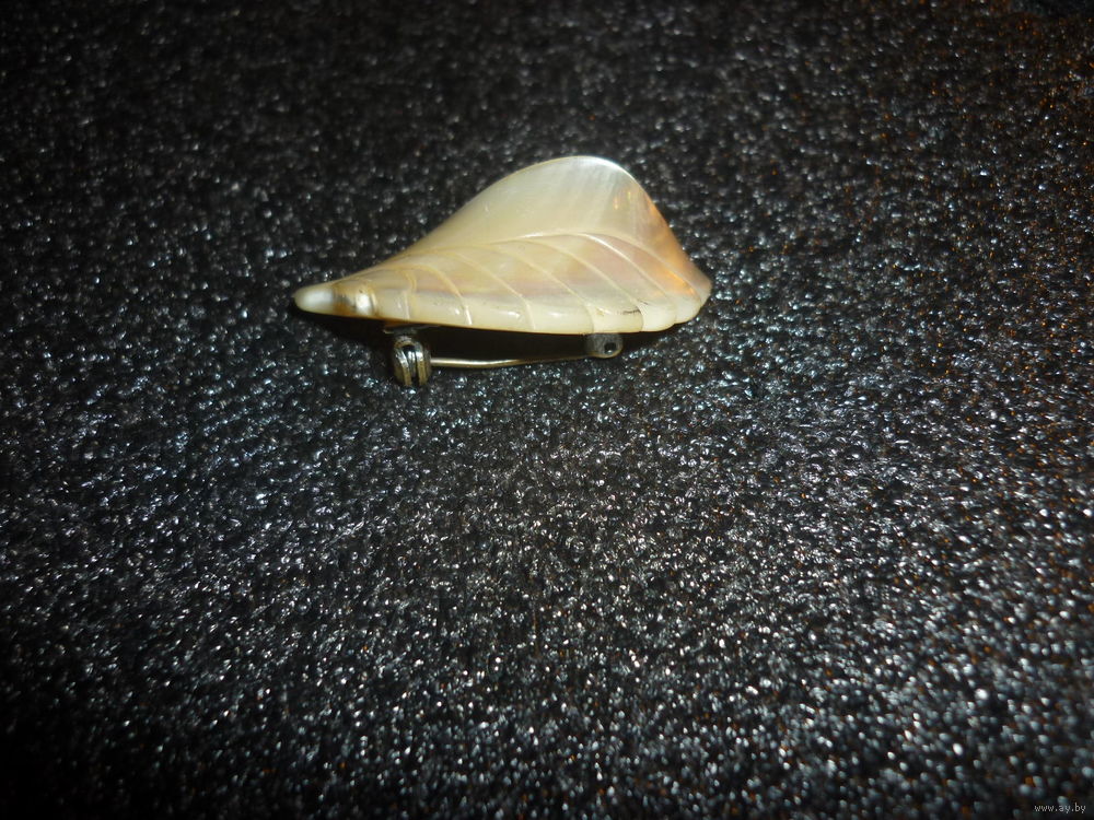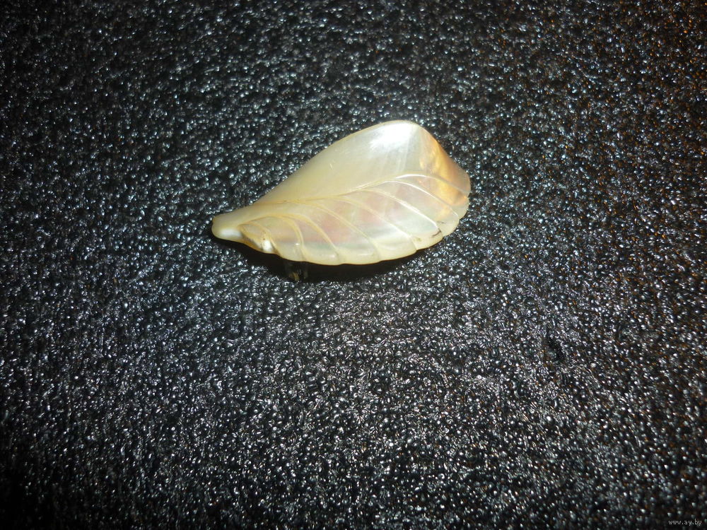 Брошь Лист Натуральный ПЕРЛАМУТР Старая Германия